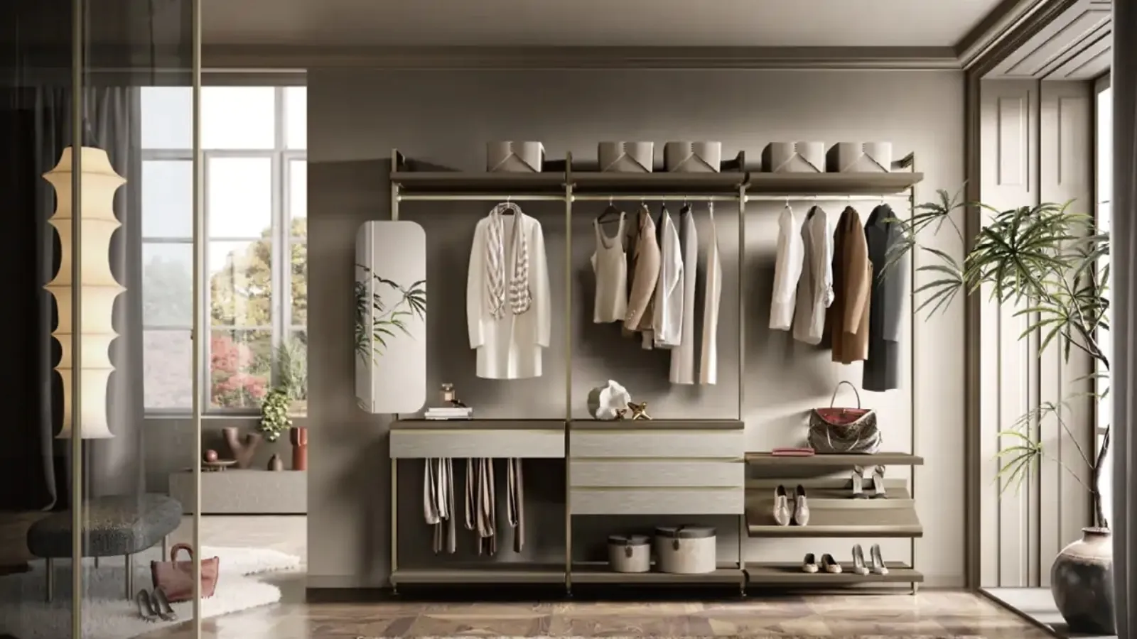 Modern walk-in wardrobes: discover this model of Virgo V321 walk-in wardrobe by Moretti Compact Gio