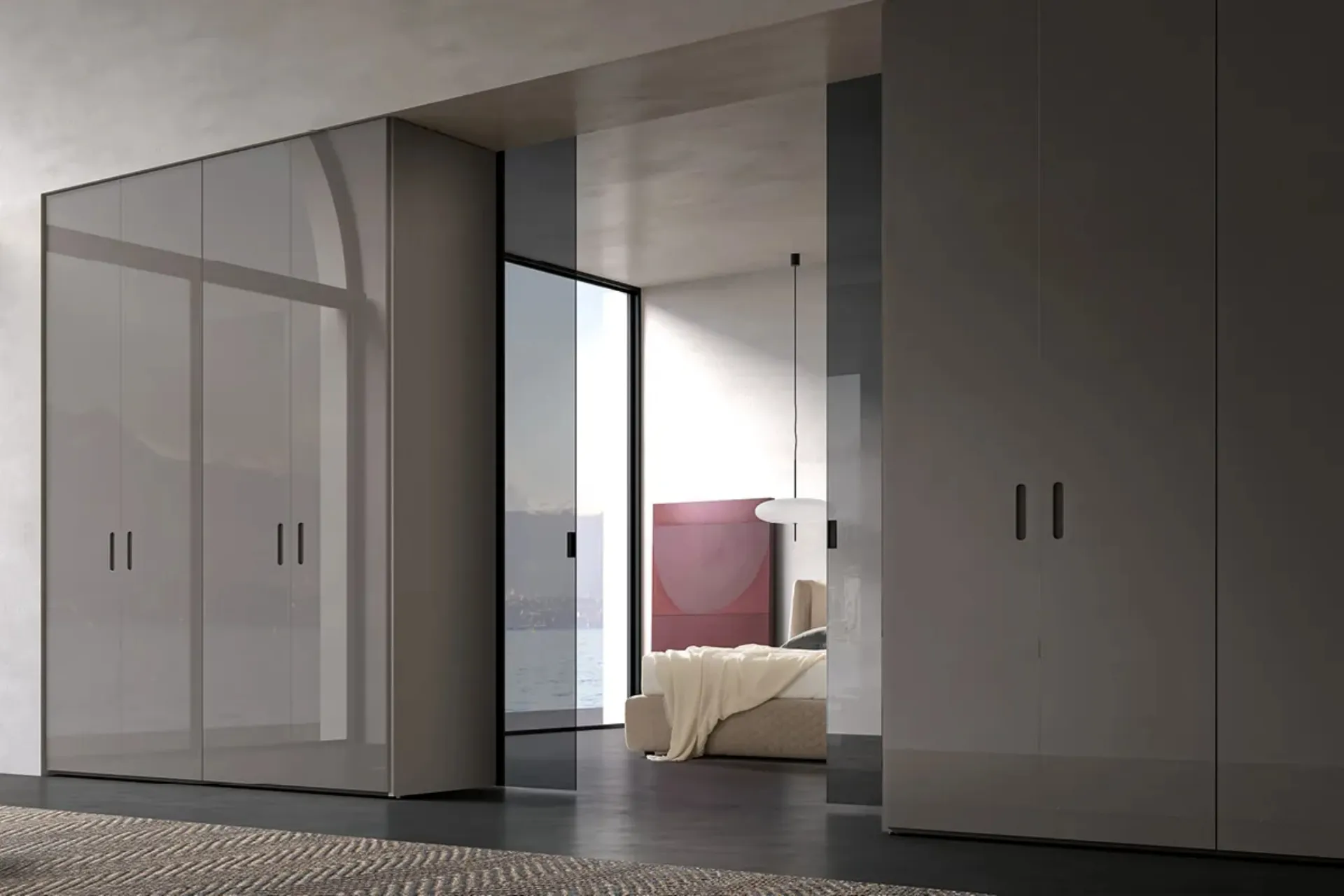 In our series of custom-made wardrobes with hinged doors you can also find the model shown in the photo, perfect for those looking for practicality and design. This solution, among the many made-to-measure models with hinged doors by Adok, is a guarantee of resistance, elegance and long-lasting refinement. To complete the furnishing concept in a functional and aesthetically pleasing bedroom, we have selected for you the most beautiful and captivating Adok solutions, different in style, size, material and accessory elements. Double-sided Atelier wardrobe with sliding glass door by Adok : fill out the form for info and quotes and design your home as you dreamed of it. Contact us and find out more about a rich catalog of Home Furnishings to furnish the bedroom using glass containers of great design.