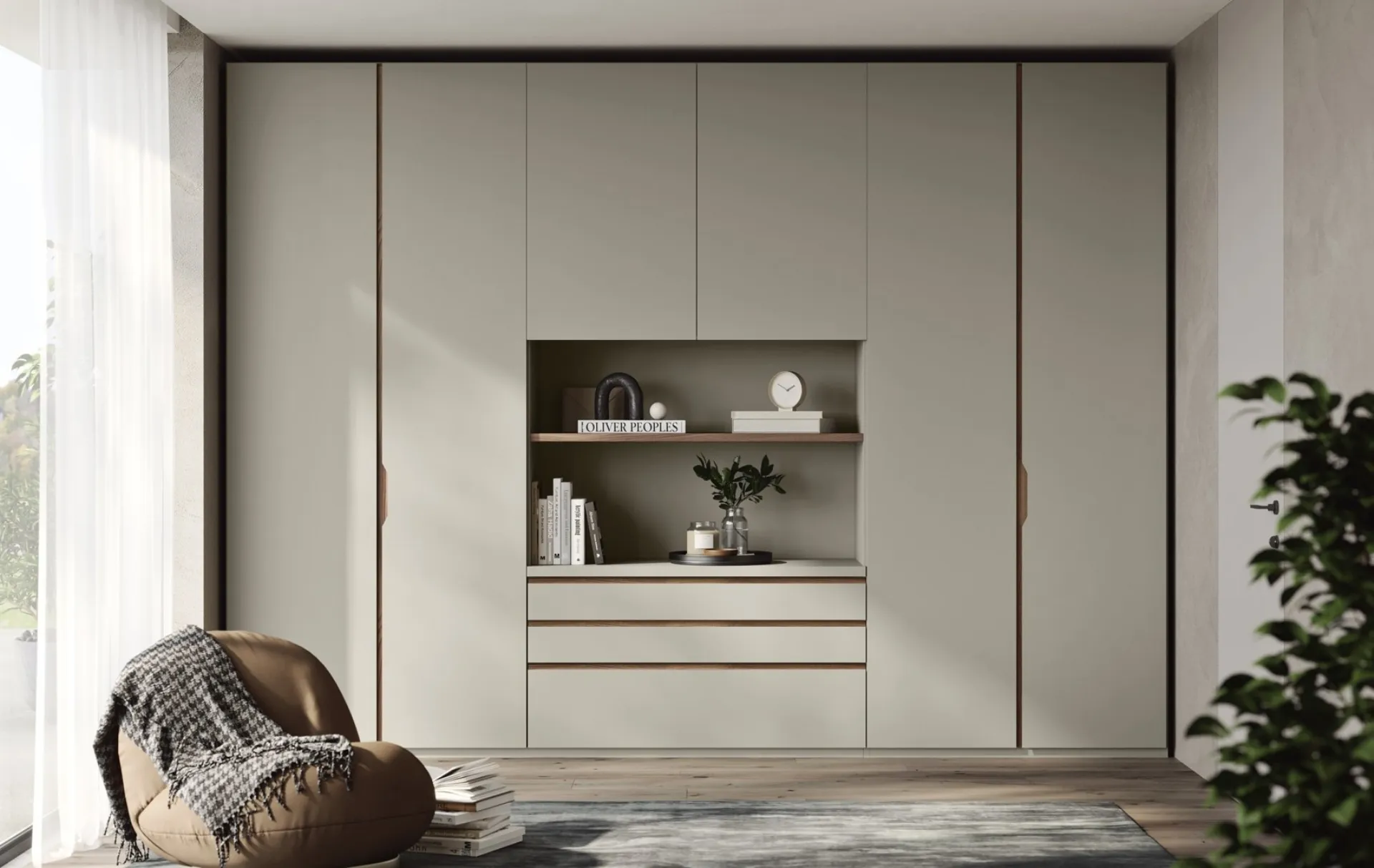 Wardrobe with Fusion swing doors by Fimar in matte lacquer: in a rich catalog of furniture and accessories, this model will allow you to complete your rest area as you imagined. Security and comfort are the aspects that, alongside a high aesthetic content, distinguish all the modern wall wardrobes of the Fimar company. If you wish to create a beautiful and high-quality room, fill out the form or visit us to receive information, advice, and news in the field of Home Furnishings. A wide availability of furniture in matte lacquer such as this wardrobe with swing doors in the photo. Visiting our store means getting hands-on with many furniture pieces from the well-known and recognized brand, always of high aesthetic content. Armadio con ante battenti Fusion by Fimar: if you want professional decorators for quotes and projects, create the home you have always desired with us.