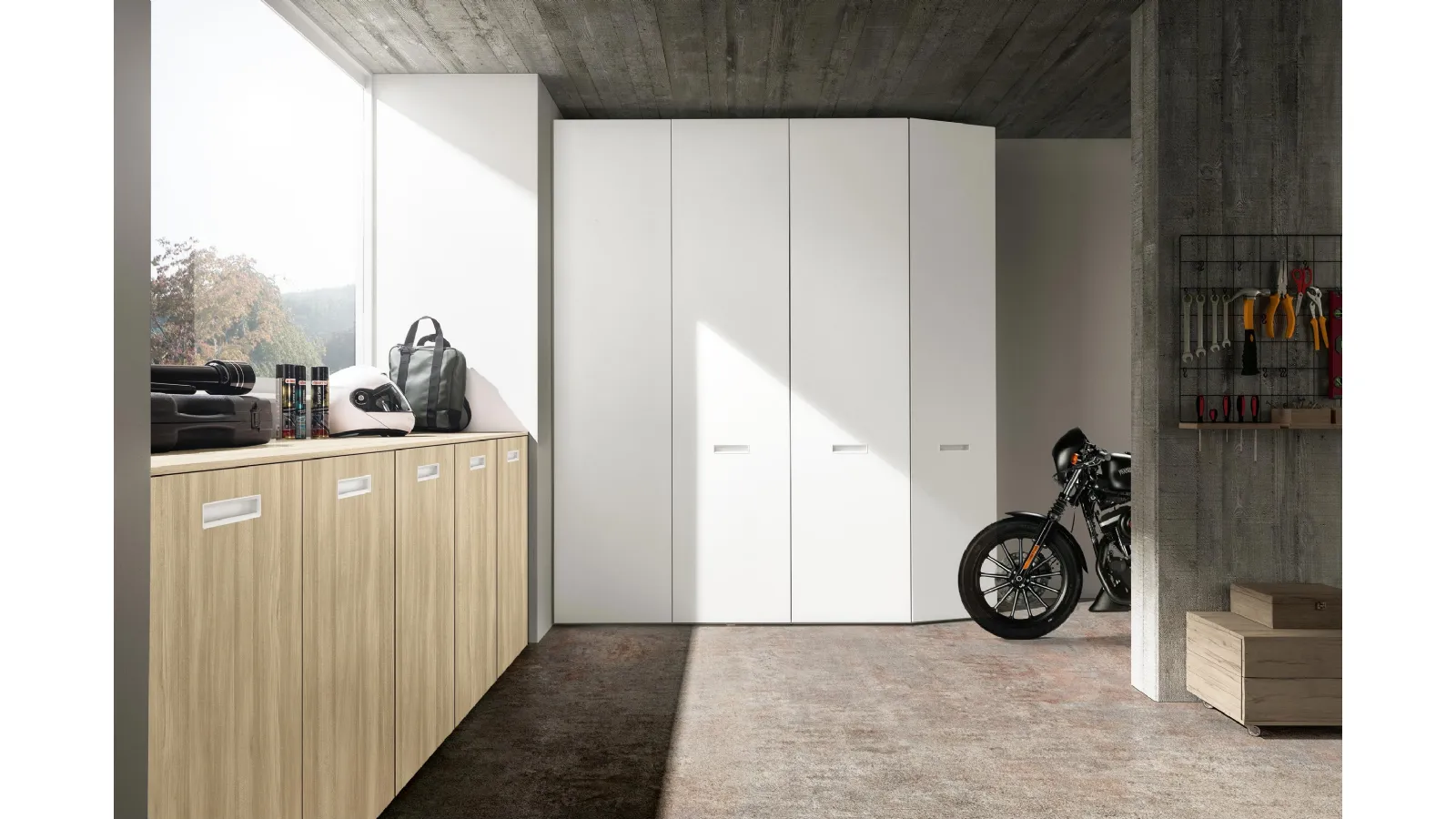 Contact us and get information about our Home Furniture collection: you can complete the resting area by relying on a wide range of modern storage furniture, such as the matte lacquered wardrobe in the photo. To perfectly furnish a practical and sophisticated room, opt for the most original solutions from the best brands, high-quality beds, wardrobes, and bedside tables. Adok's Garage Cabinets: fill out the form to receive information of all kinds and advice on furnishing the room you have always dreamed of. Modular wardrobes with swinging doors are essential elements in a room, to make it tastefully furnished, practical, and complete with everything.