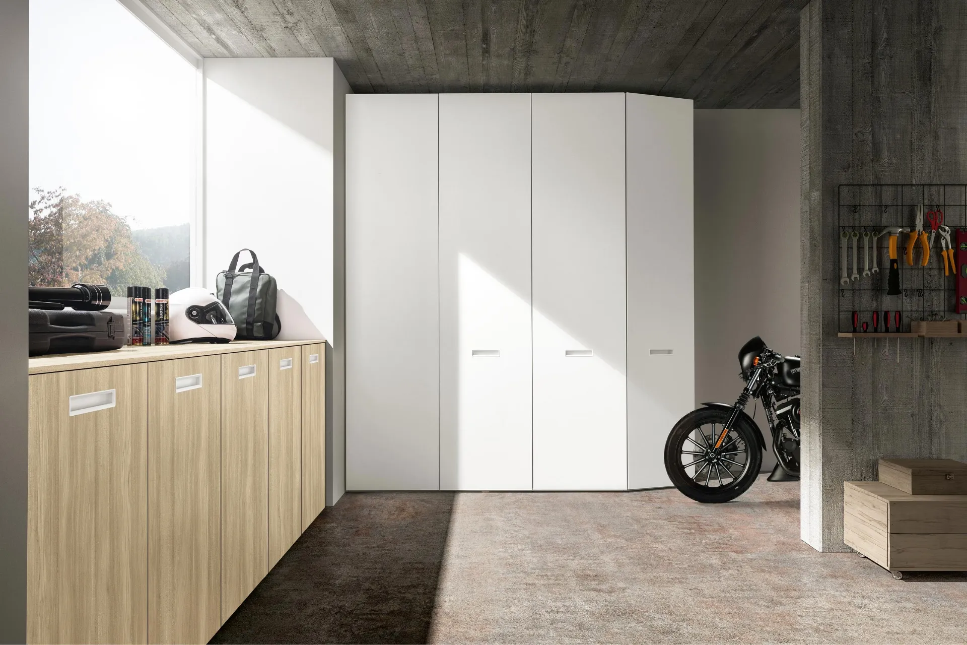 Adok's modular wardrobes with hinged doors await you: discover the garage wardrobe model in the photograph