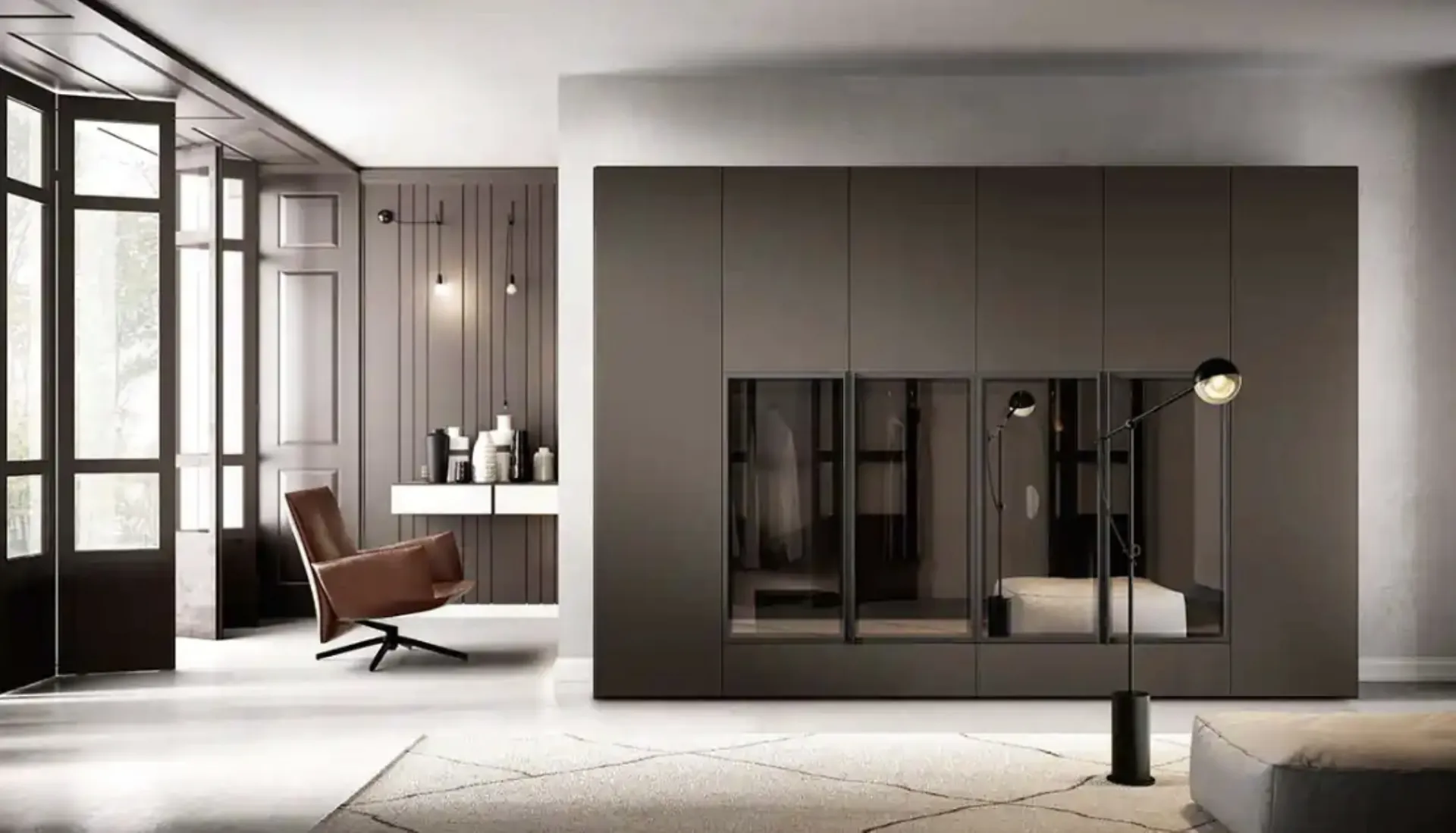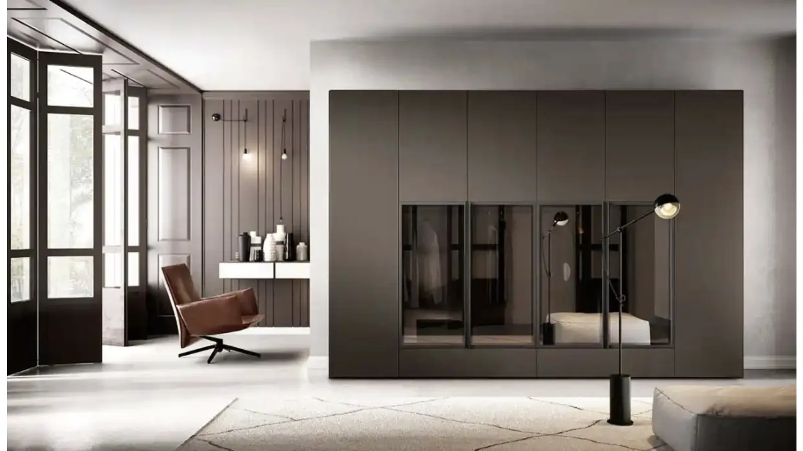 Wardrobe with hinged doors for design spaces, Libeccio and Fohen B372 models: discover the wall-mou