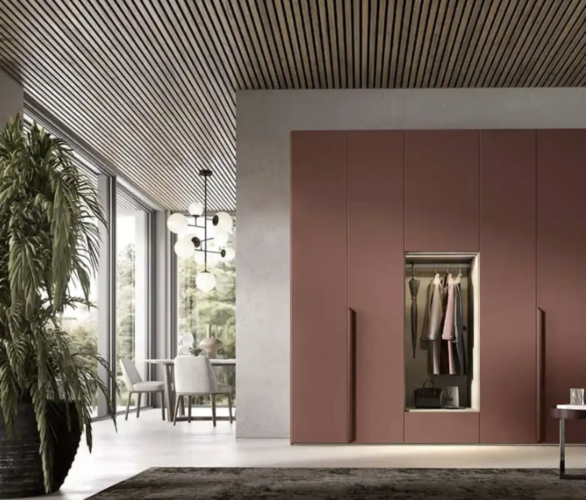 Libeccio U455 model with matt lacquered hinged doors designed for a rest area with modern reference