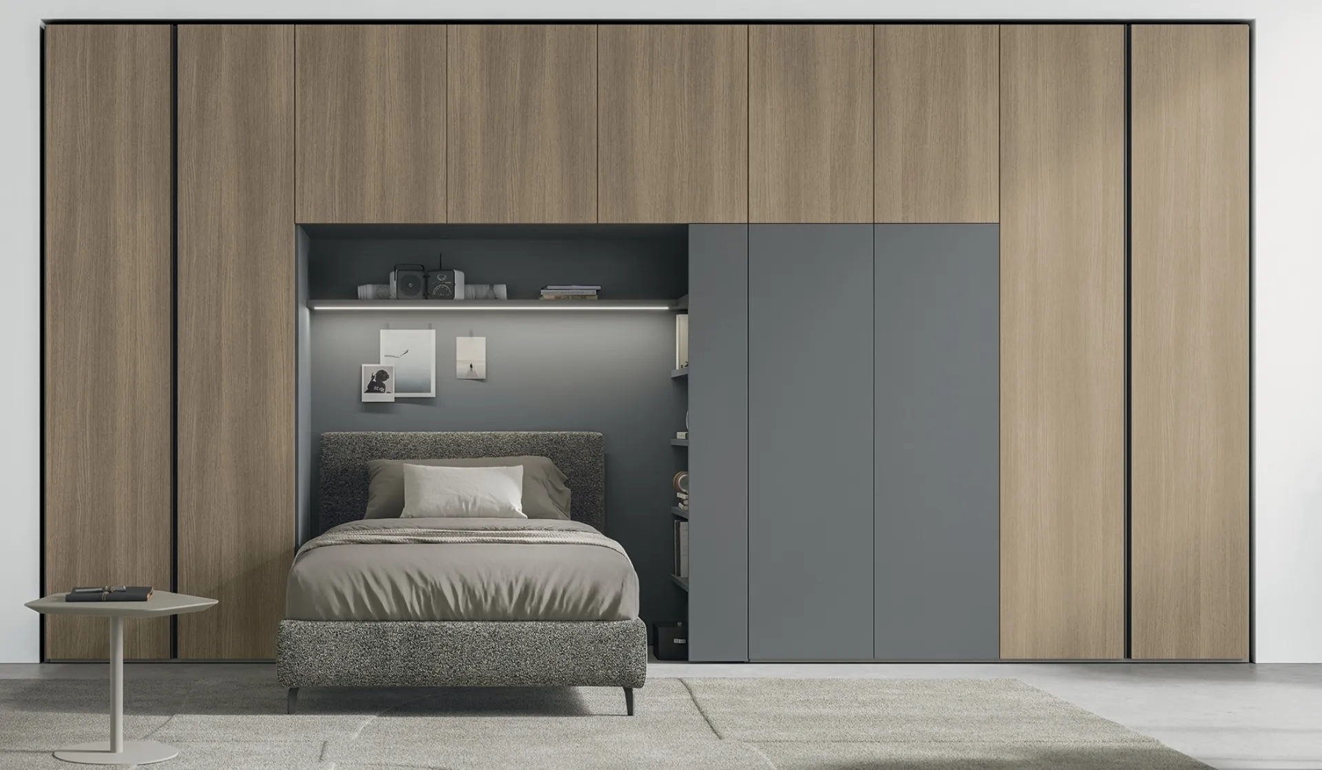 L'innovativa armadiatura a ponte Logica Plus UNIT_10 di Tomasella è ora disponibile per essere ammirata presso il nostro showroom Rusconi Arredamenti s.r.l. a Cirimido. Questa composizione è sapientemente studiata per massimizzare ogni centimetro dello spazio, offrendo una capacità di contenimento eccezionale e un impatto visivo di grande pregio. La struttura sfrutta l'altezza sopra il letto e si estende con colonne laterali, ottimizzando l'intera parete. La configurazione esposta può presentare una raffinata nicchia in laccato opaco Marna 180, incastonata tra armadiature in materico Rovere Cognac, con un'alternanza armoniosa di vani a giorno e sezioni chiuse da ante. Il vano centrale è ideale per accogliere il letto, completato da una mensola con illuminazione integrata e ripiani aggiuntivi che ne esaltano la dinamicità e praticità. Le nostre soluzioni d'arredo combinano magistralmente estetica e massima funzionalità, ideali per gli ambienti contemporanei di Cirimido e dintorni.