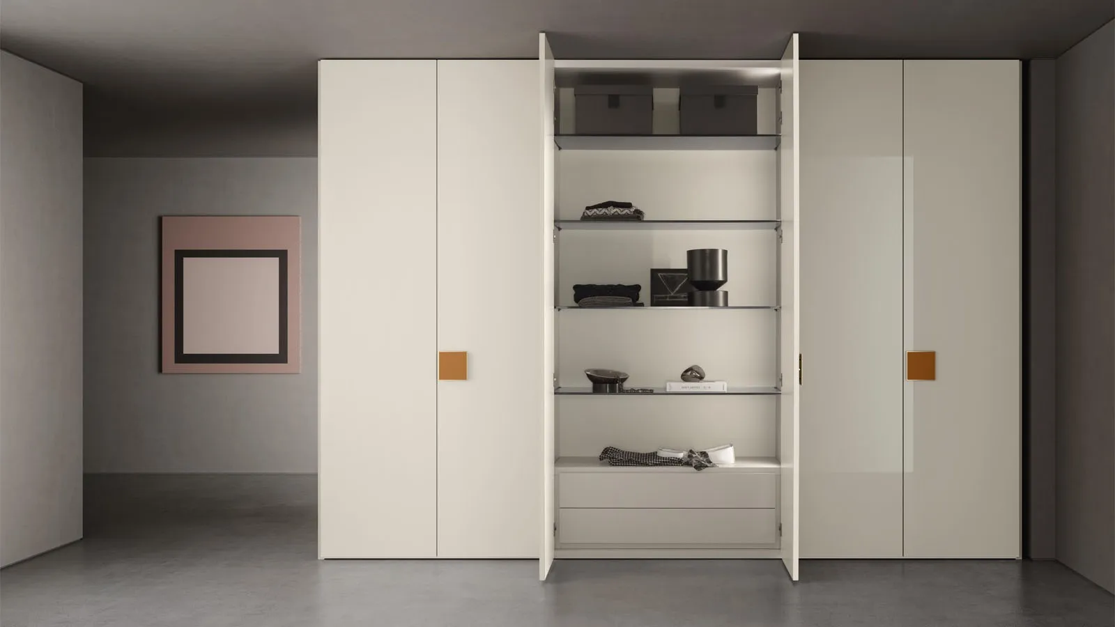 Visiting us means seeing in person the offerings of the renowned brand, always with a high aesthetic content. Matte lacquered hinged wardrobe Plana by Pianca: if you desire professional interior designers for quotes and projects, create your dream home with us. Reliability and comfort are the aspects that, together with a certain style, distinguish all the modern custom wardrobes by Pianca. Matte lacquered hinged wardrobe Plana by Pianca in matte lacquered finish: in a wide range of furniture and accessories, this model will complete your bedroom as you've always dreamed. If you want to create a practical and sophisticated room, fill out the form or visit us for information, advice, and news in the field of Home Furnishings. A diverse availability of furniture in matte lacquered finish like this wardrobe with hinged doors in the photograph.