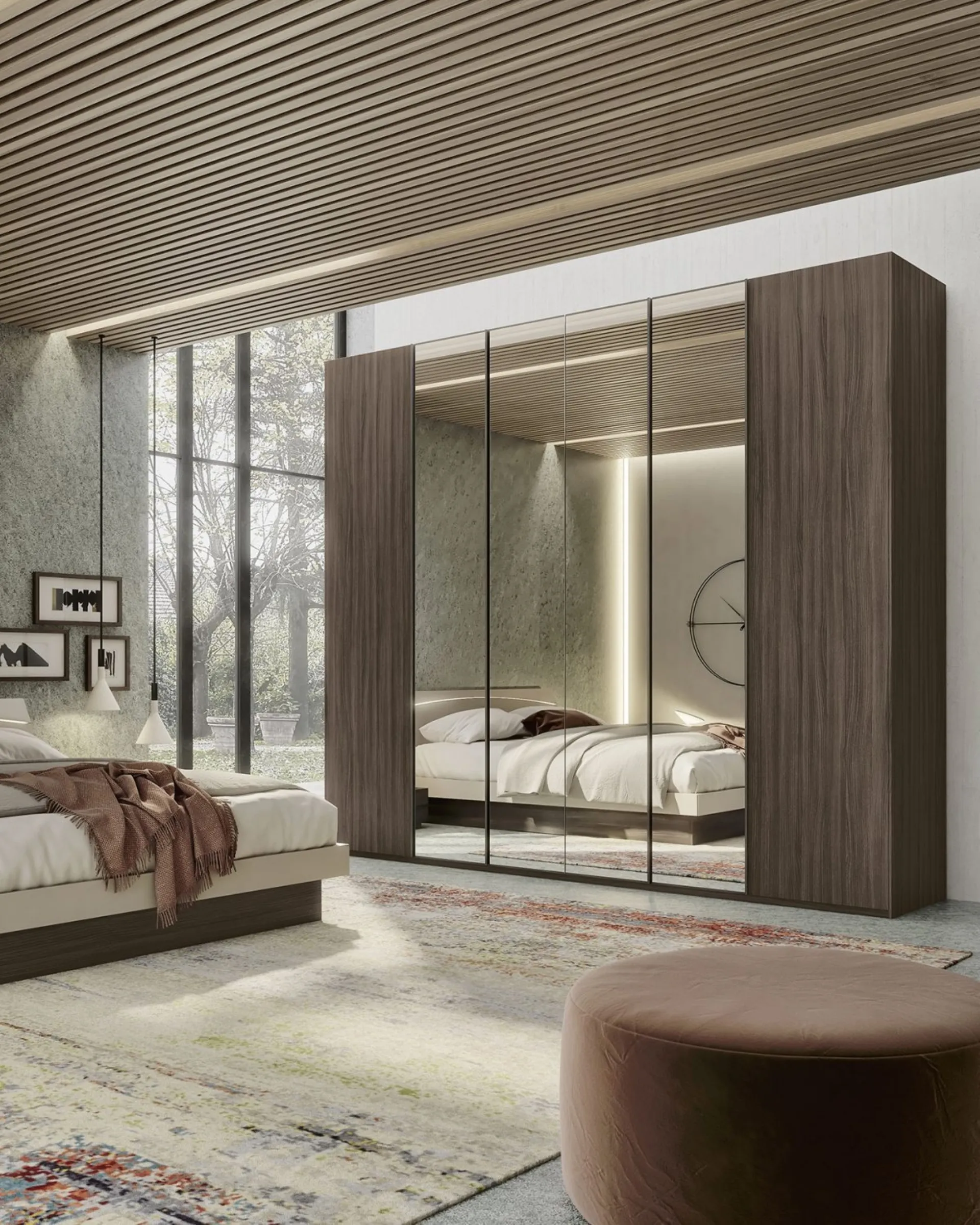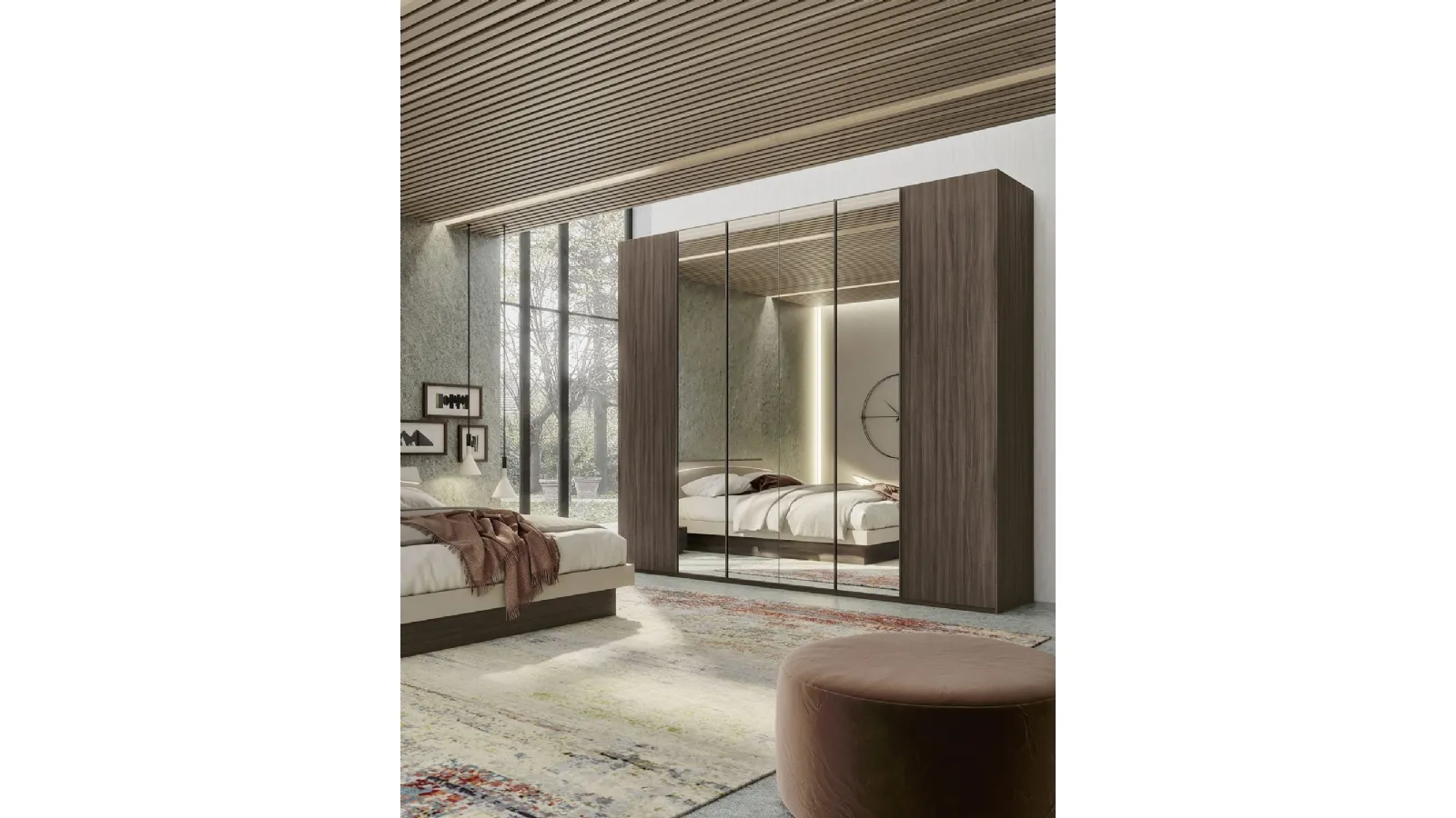 Wardrobes and walk-in closets with hinged doors should furnish the room ensuring perfect organization of spaces and exclusive stylistic research. The rest area is dedicated to rest, so it must be tastefully furnished and complete with furniture and accessory items capable of recreating a relaxing atmosphere. To perfect the furnishing concept, choose our proposals of Home Furnishing from the best brands, with different elegant, spacious, and finished beds, wardrobes, and nightstands. Quadro Steel wardrobe with hinged doors and S75 mirrors: fill out the form, contact us, and bring to life the relaxation room as you have always imagined it. Contact us for information and quotes and you will be able to complete the rest area you have always desired thanks to a wide availability of modern storage furniture like this melamine wardrobe in the photo.