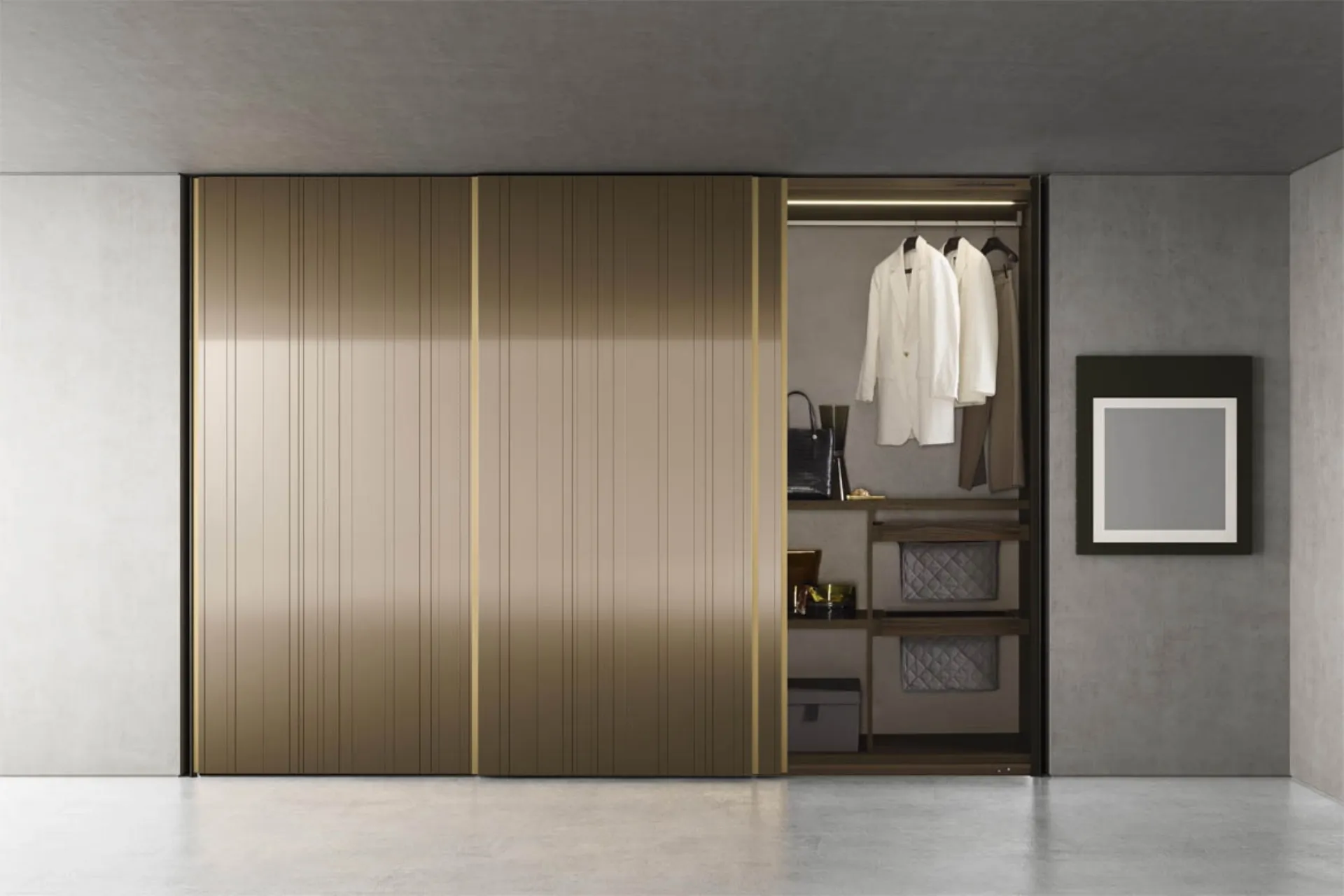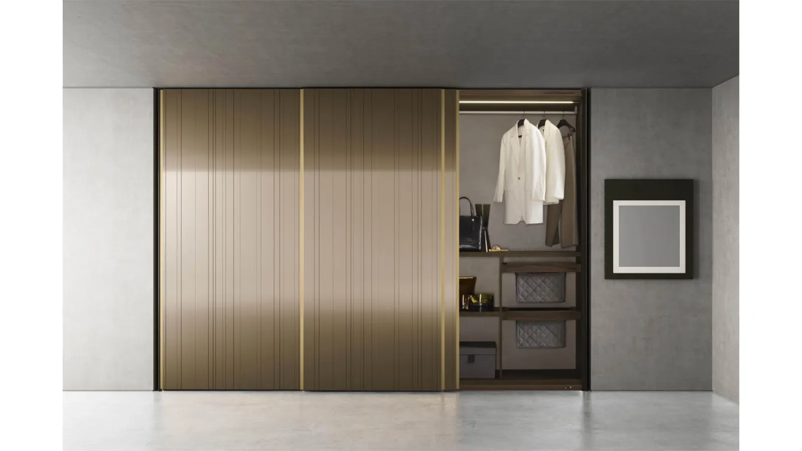 Sliding mirror door wardrobe with Bronze finish by Pianca.