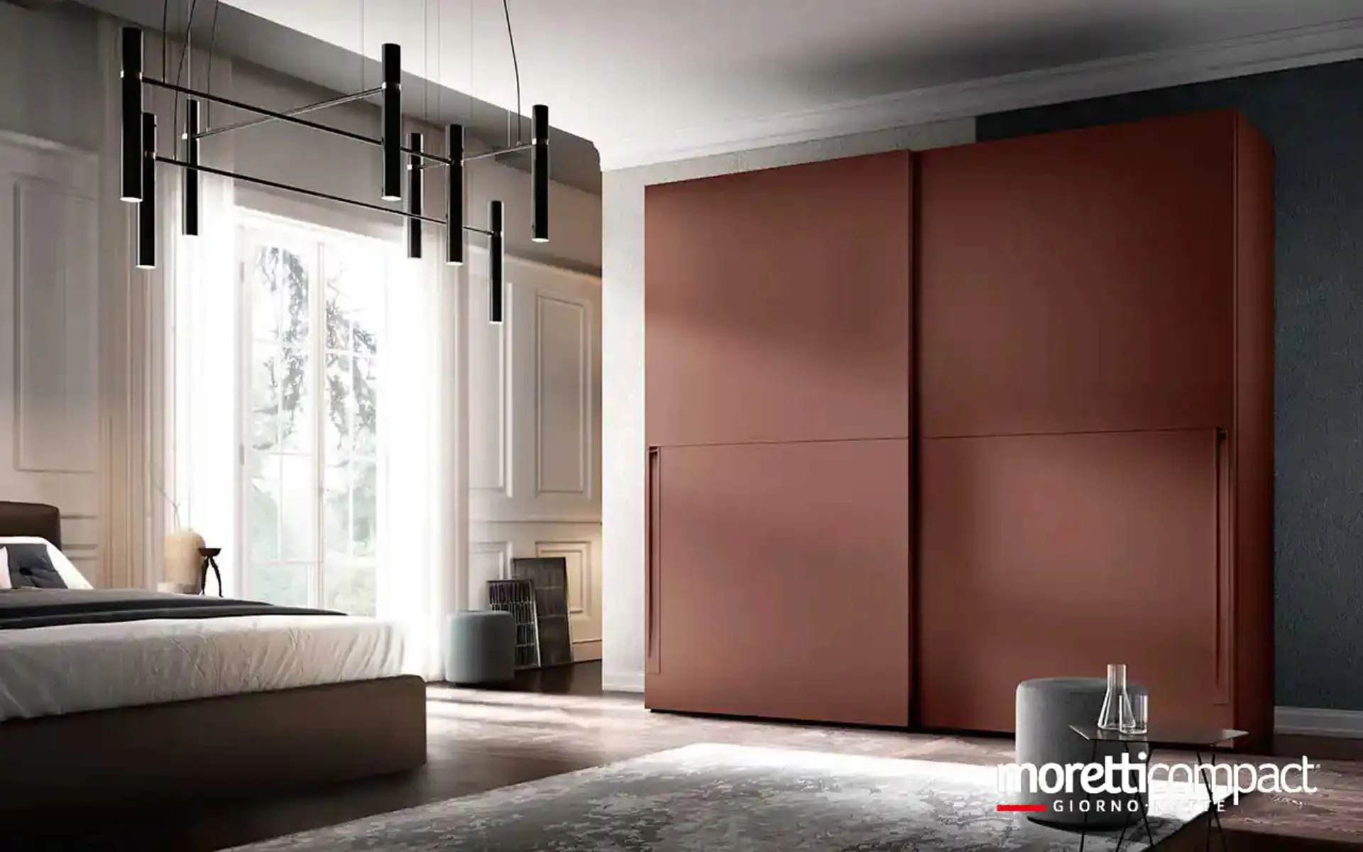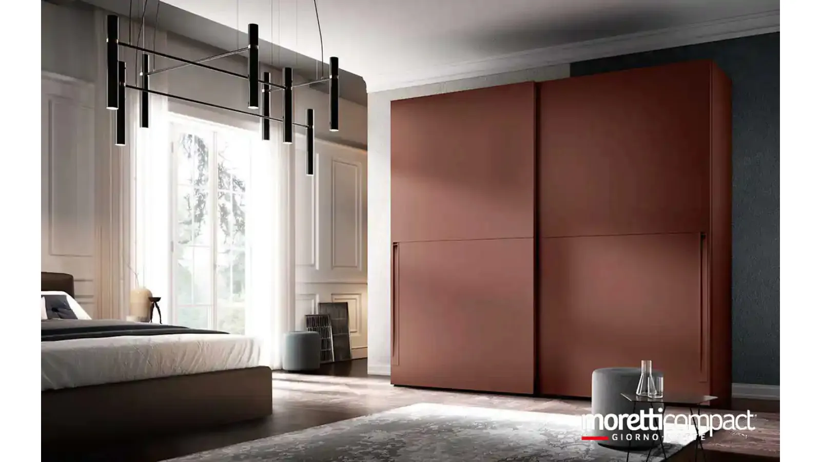 Sliding door wardrobes are essential elements in the bedroom to make it furnished to the best, functional, and complete with everything. Solano S165 wardrobe with sliding doors by Moretti Compact Giorno Notte: fill out the form to receive information of all kinds and advice to design the bedroom you have always wanted. To perfectly design a practical and sophisticated room, prefer the most original solutions from the best brands, high-quality beds, wardrobes, and bedside tables. Contact us and get information about our Home Furnishing line: you can complete the bedroom area with a rich offer of modern storage furniture, like the wardrobe in matte lacquer in the photograph.