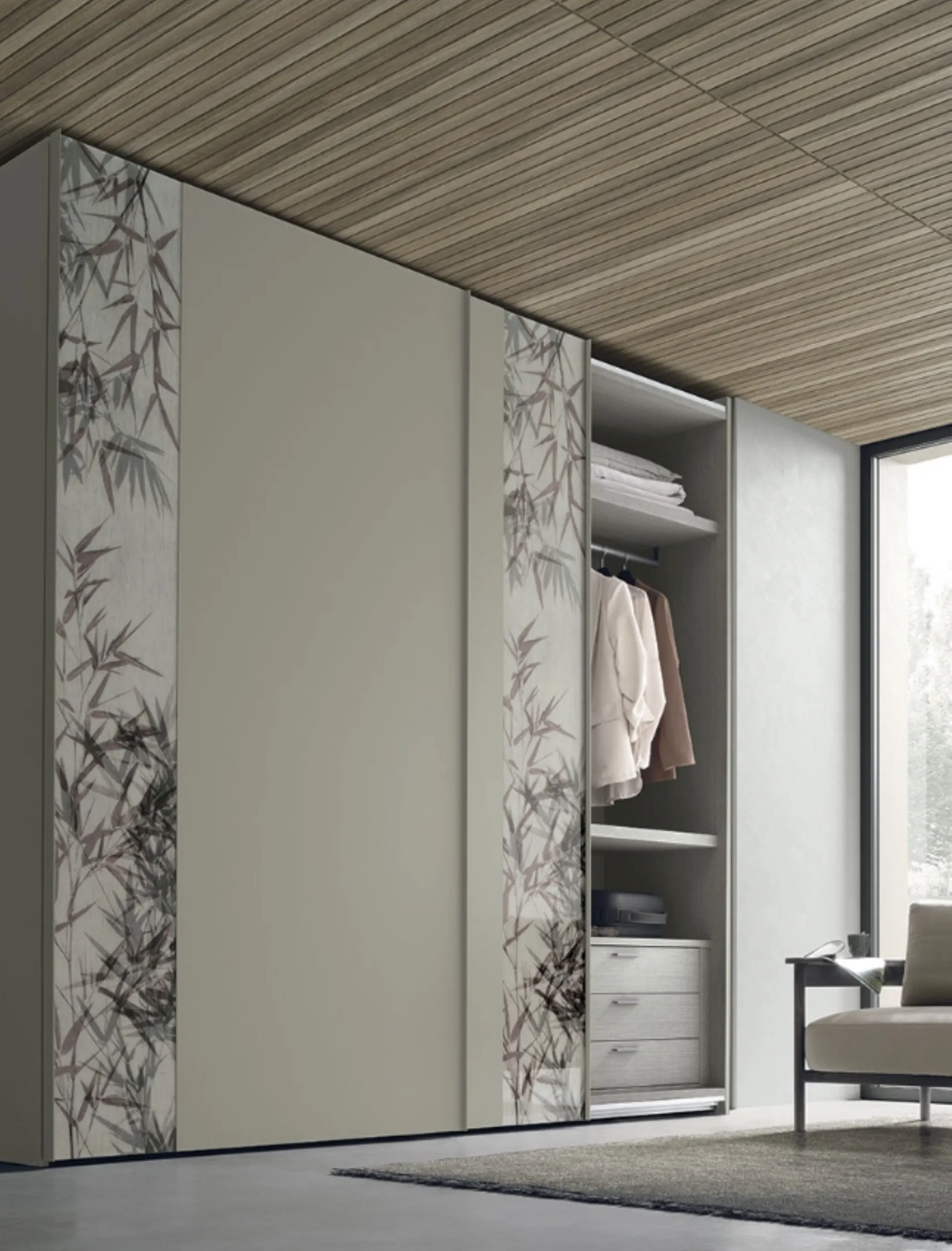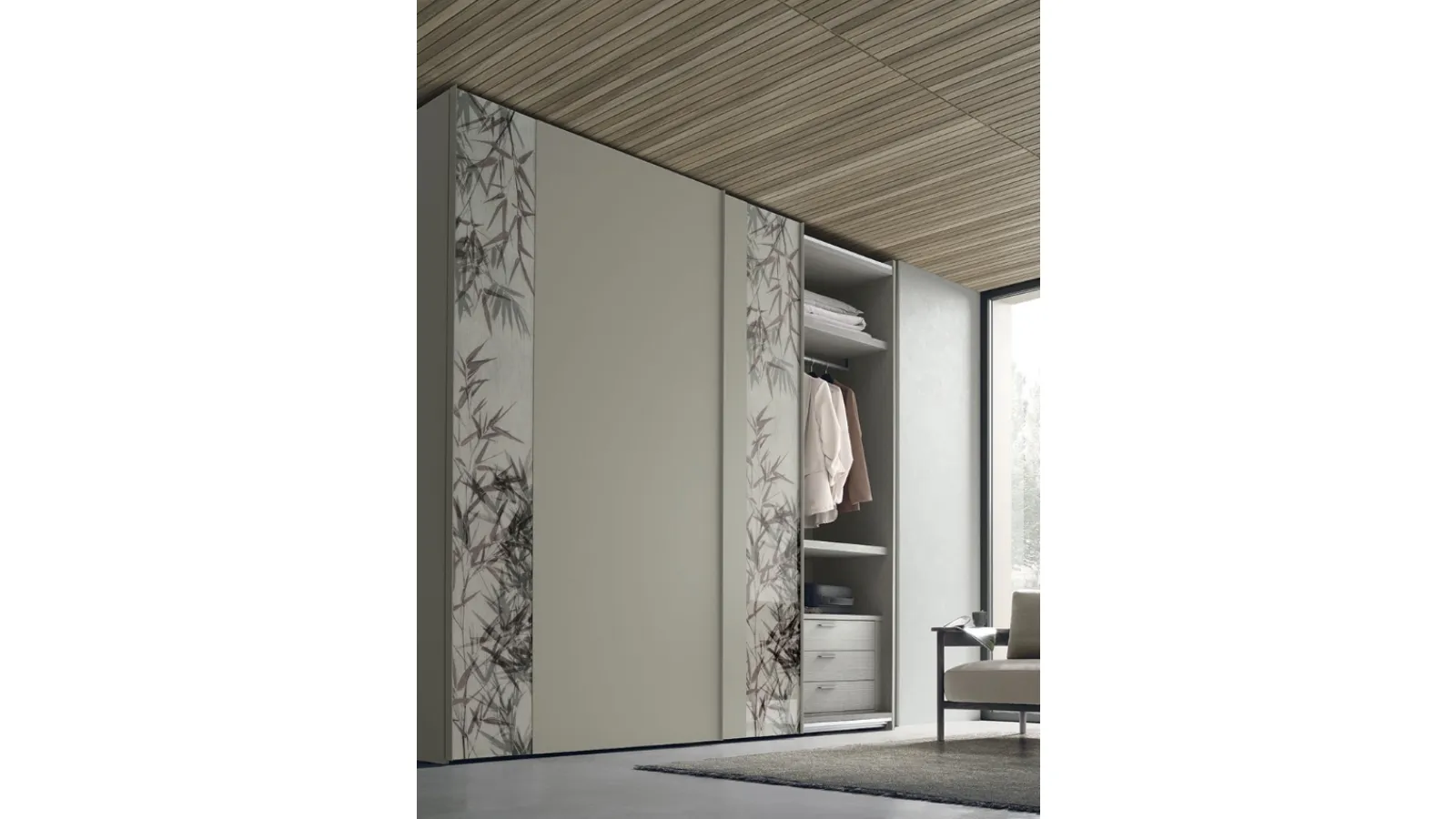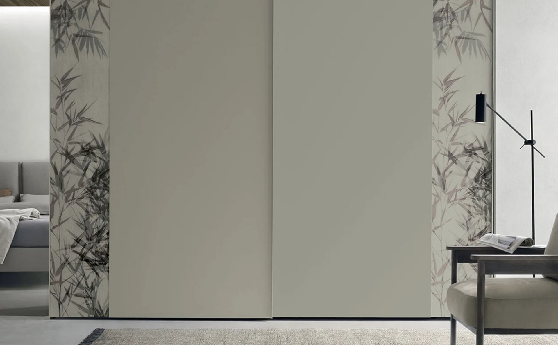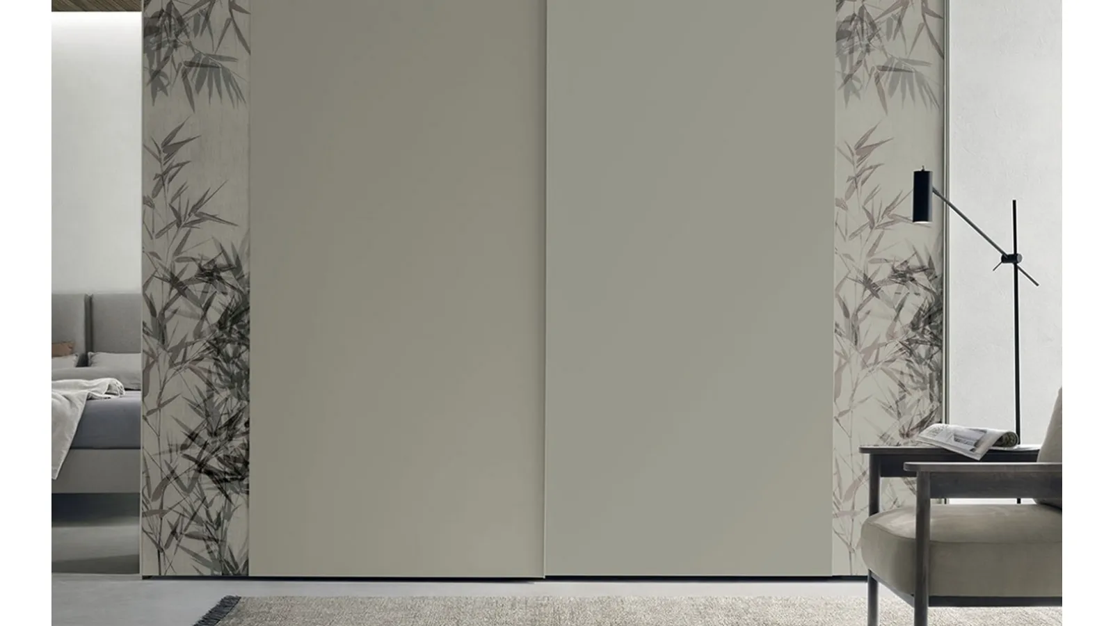 Strip model with sliding doors in matt lacquer designed for a bedroom with modern references: disco