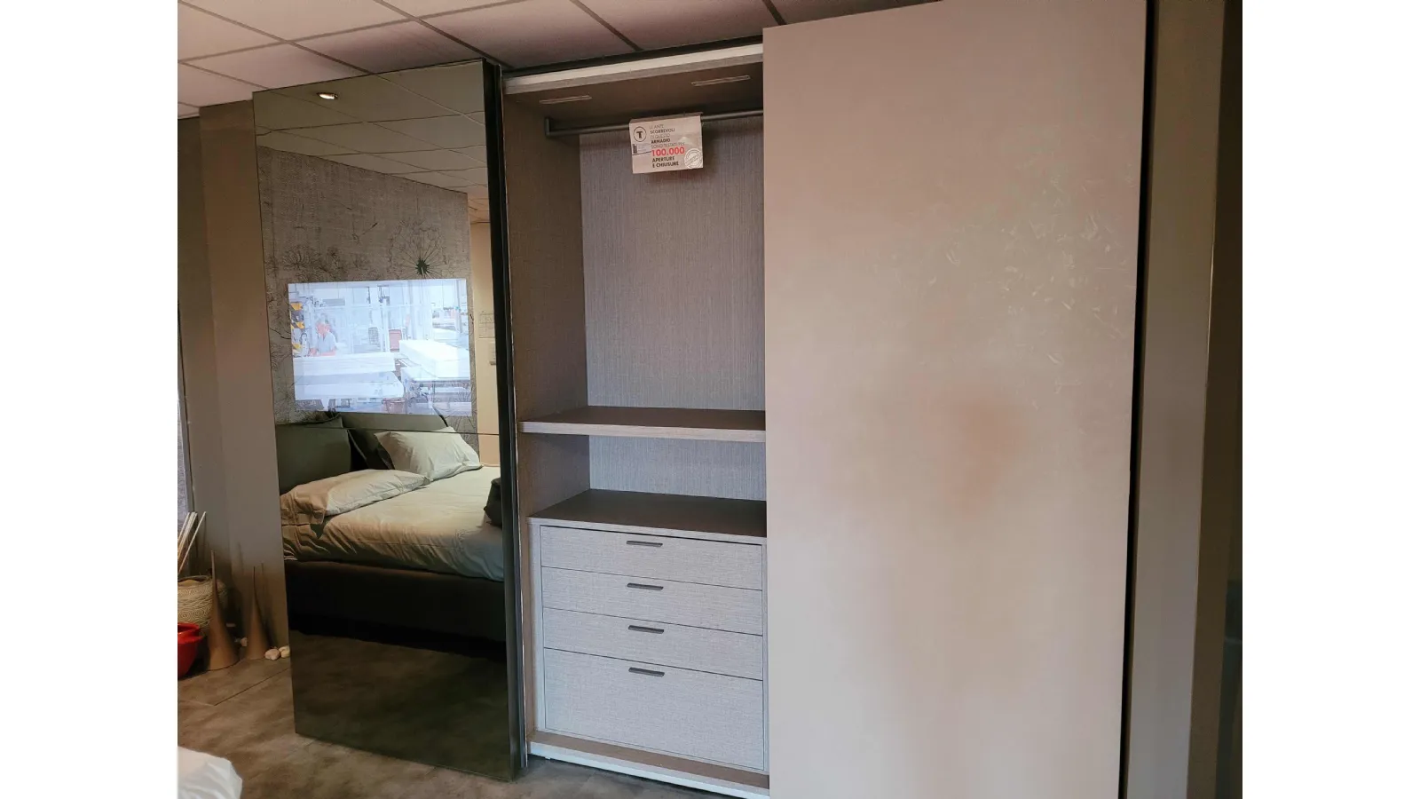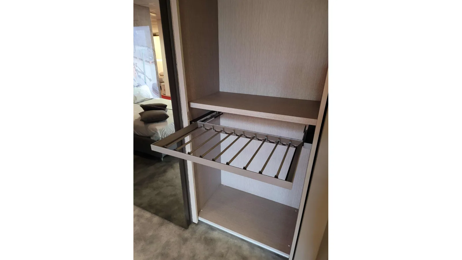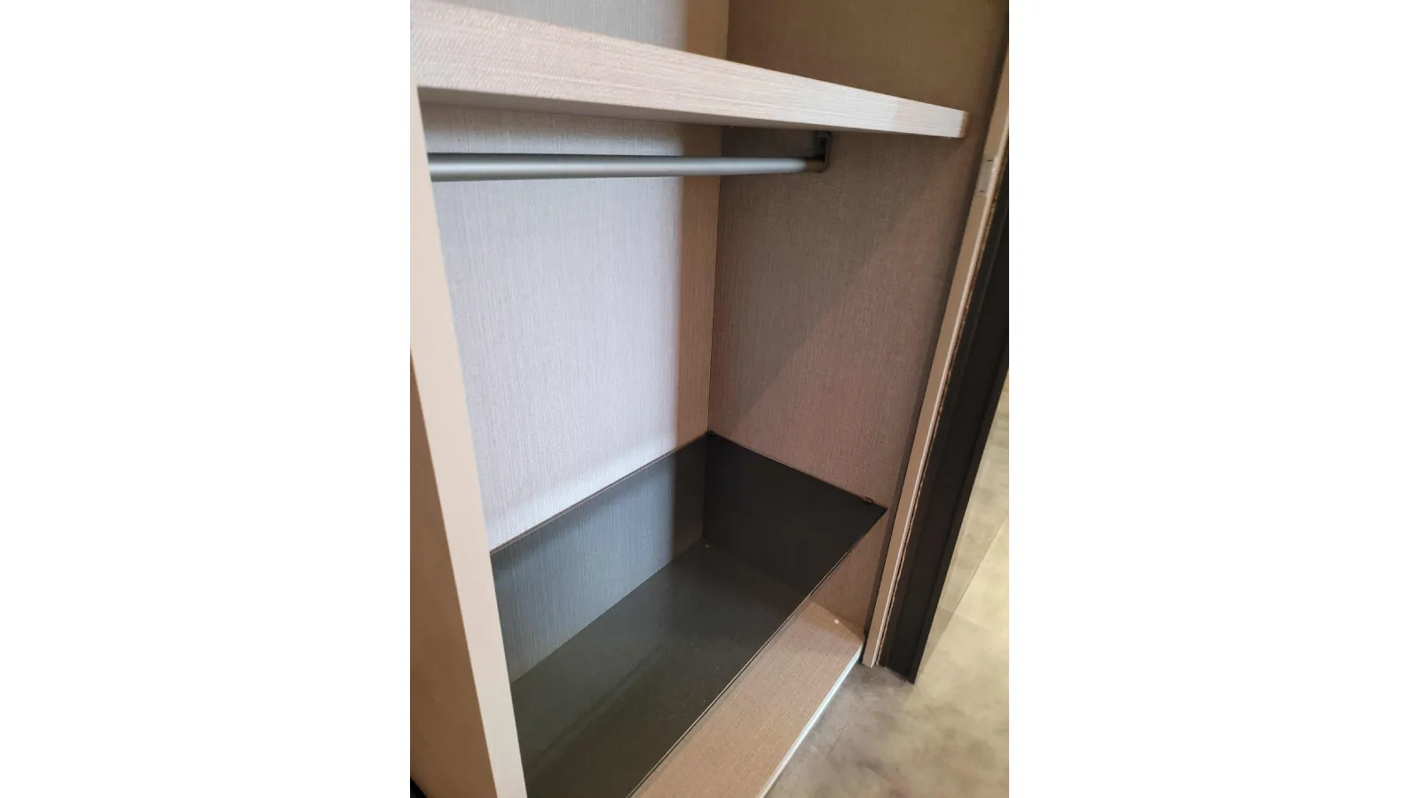L’ interior of’ wardrobe è in the new Alpaca finish, which emulates the l’ fabric effect