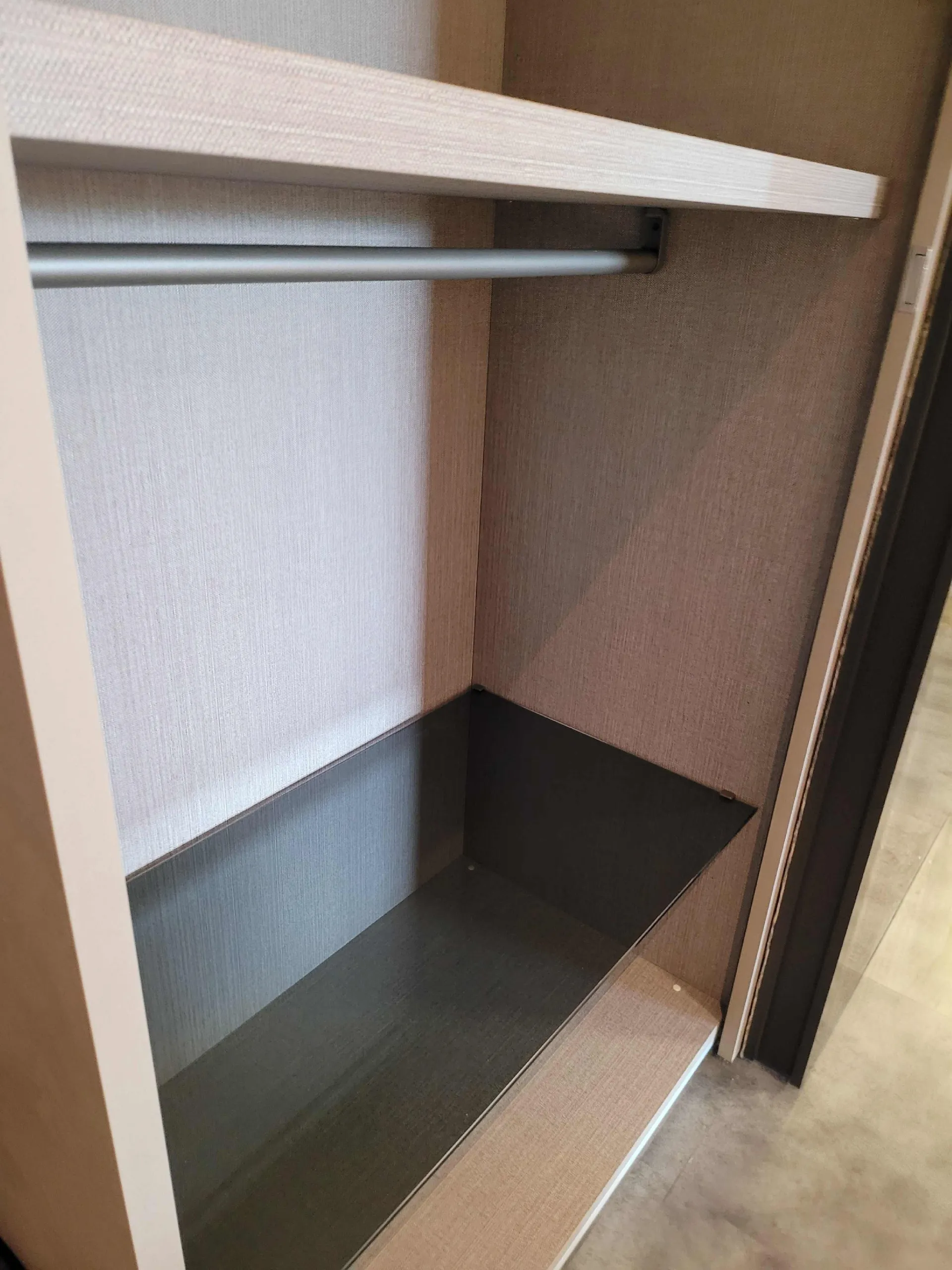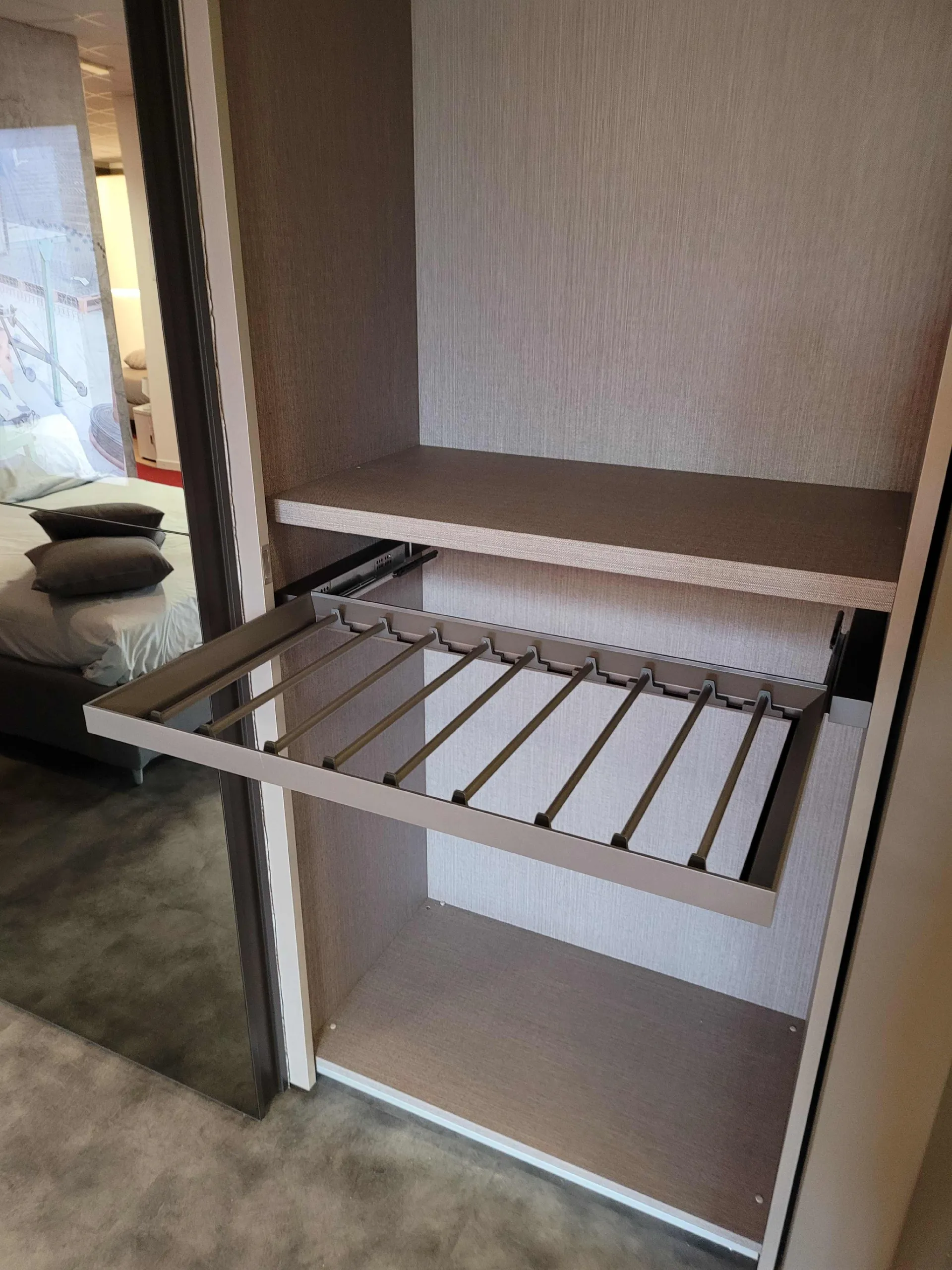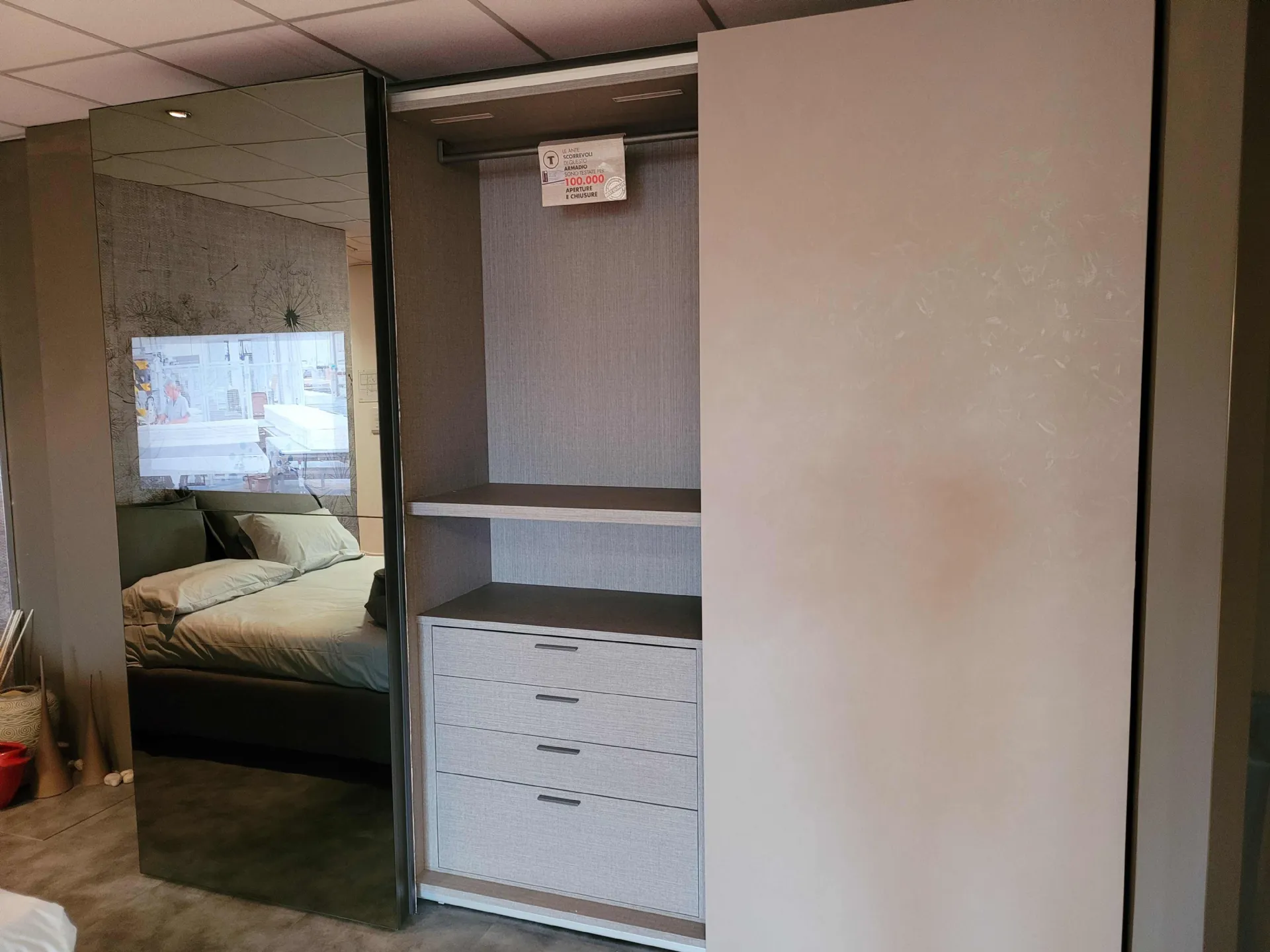 L’ interior of’ wardrobe è in the new Alpaca finish, which emulates the l’ fabric effect