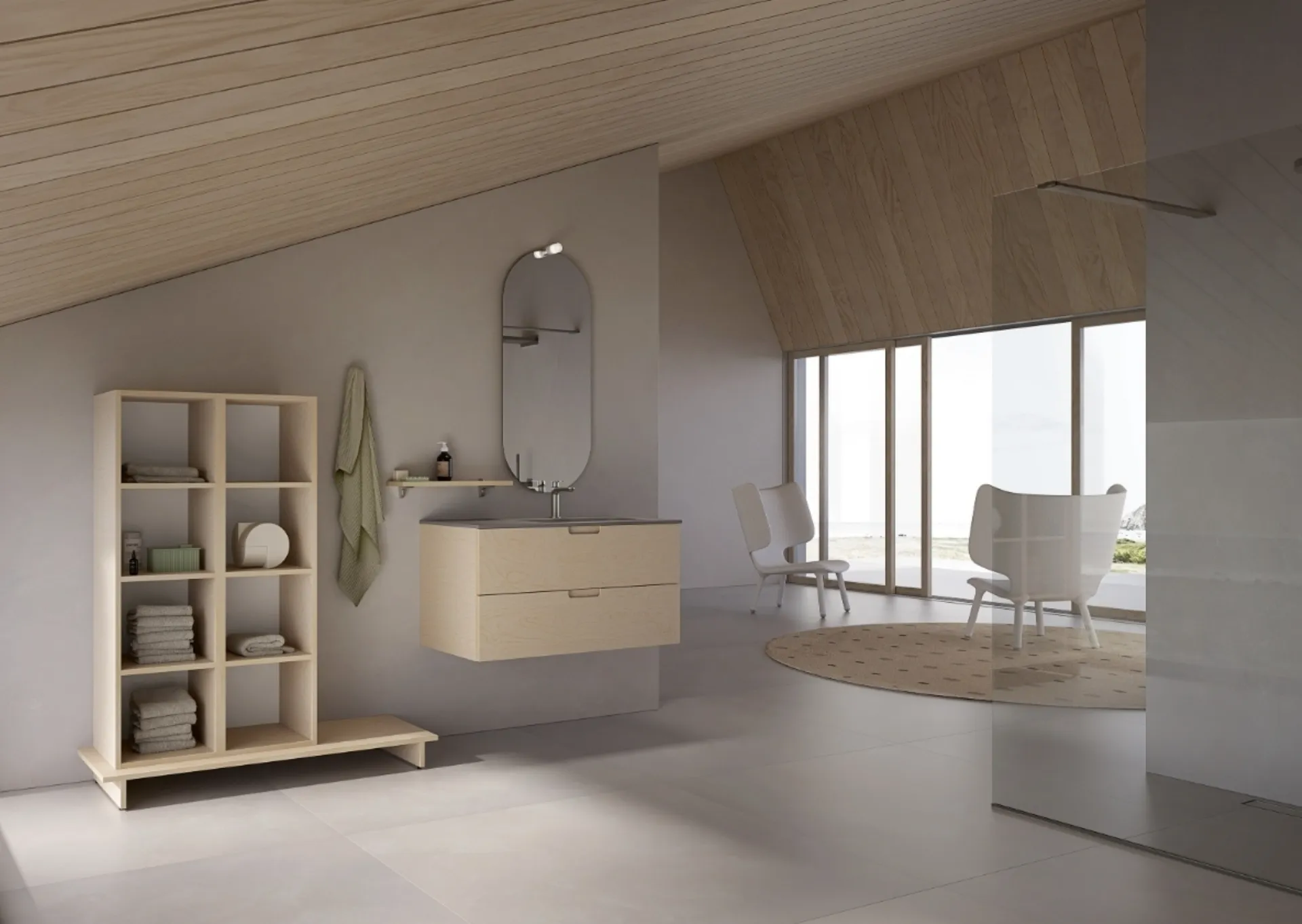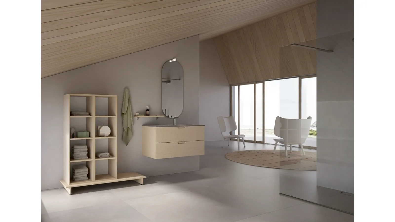Quali materiali e caratteristiche distintive ha il mobile bagno STRATOS OS11 di Compab?Il mobile bagno STRATOS OS11 di Compab è disponibile in diverse finiture come laccato, legno o laminato, garantendo resistenza all'umidità. Include cassetti con guide softclose per una chiusura ammortizzata e silenziosa.