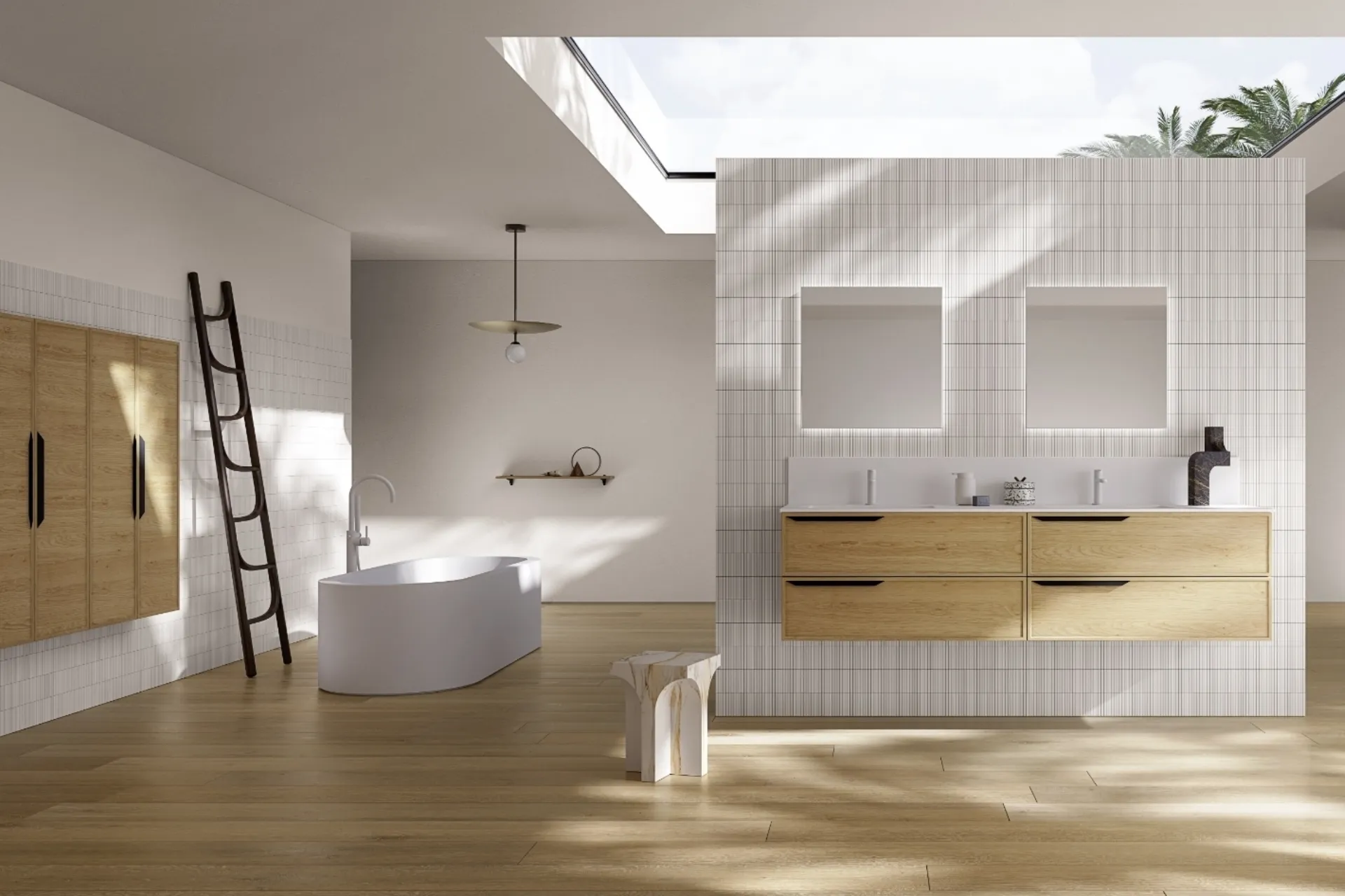 Discover our line of modern bathroom furniture and suspended wooden bathroom furniture, such as the TABULA TB05 model