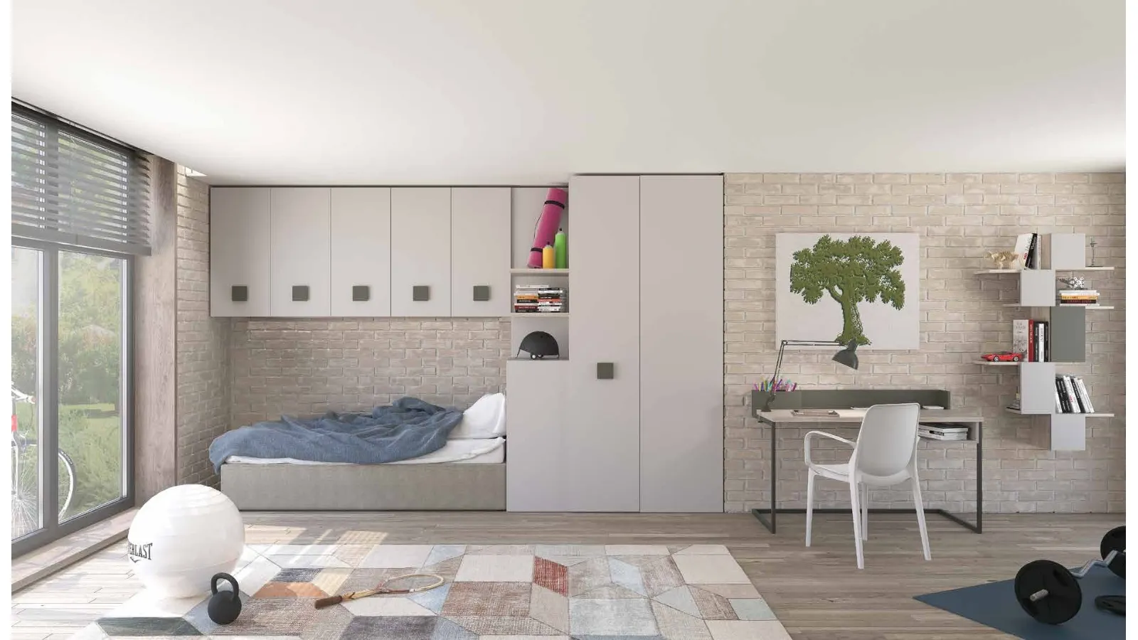 This melamine solution perfectly combines the practical qualities and aesthetics of the children's bedroom as it is able to unite ergonomics and safety. In the furnishing of the children's room entrusted to us: in our store, we offer all the most exclusive modern furnishing compositions for their room. S75 offers a wide range of custom-made accessories to compose: you will find a bed, a wardrobe, a work table, chairs, and bookshelves. If you are looking for creative ideas to perfectly organize your children's room, we propose the custom-made Open 15 Children's Room by S75 with a melamine finish. Bring aesthetic value and vibrant tones to the room dedicated to the little ones with this solution, one of the custom-made Children's Rooms for boys by S75.