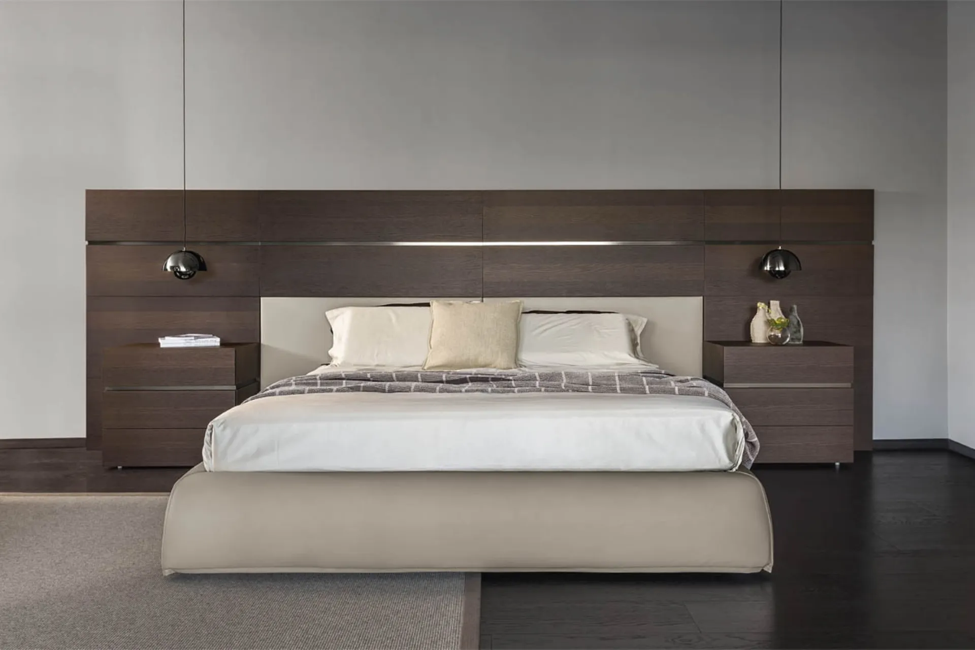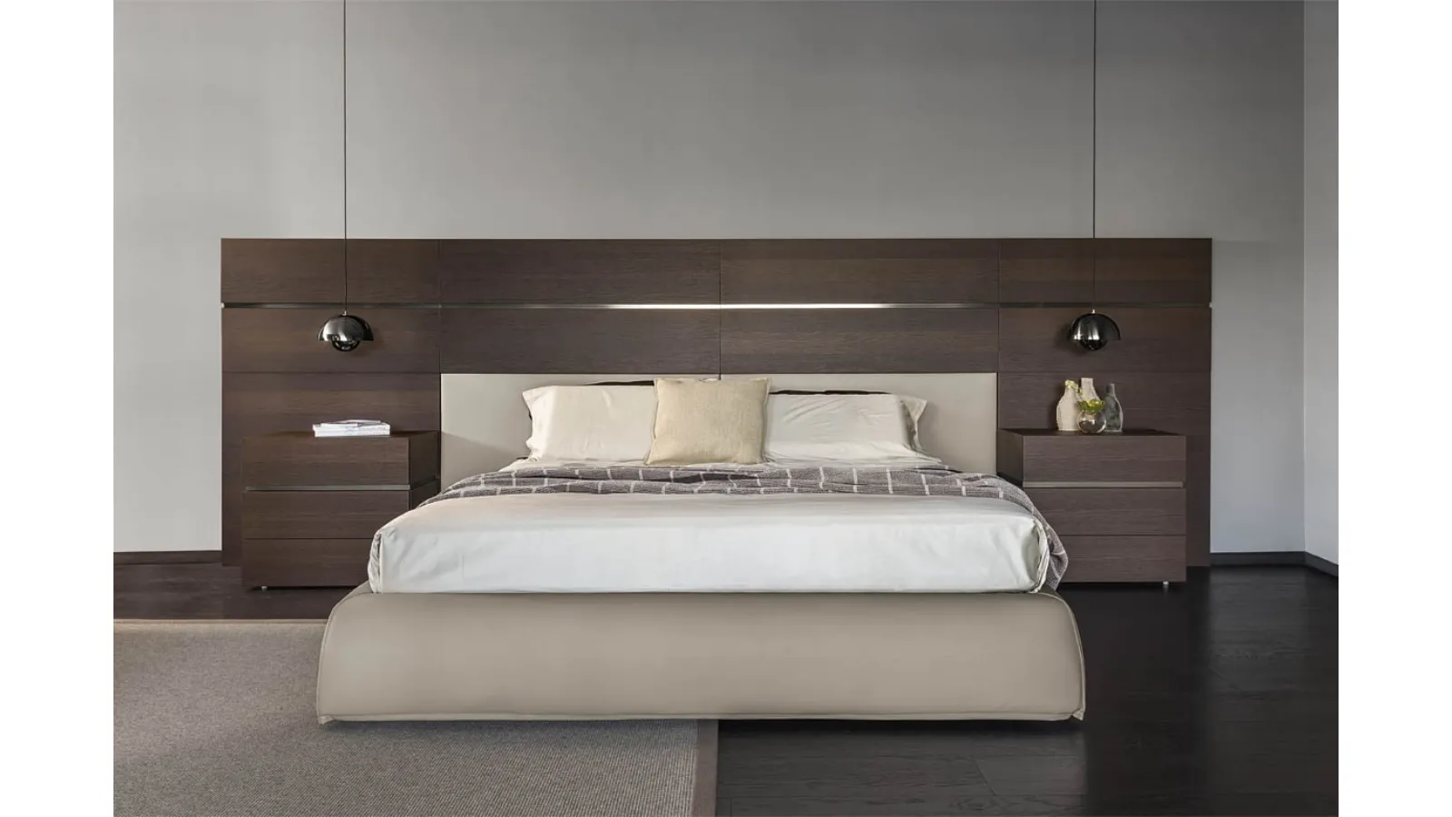 La Boiserie Legno Pianca si configura come un sistema di rivestimento murale all'avanguardia, concepito per integrare funzionalità e design contemporaneo. Il sistema è modulare e offre una vasta gamma di configurazioni, permettendo l'impiego di pannelli in essenza lignea, come la 'Boiserie Legno', o soluzioni imbottite con rivestimenti in tessuto e pelle di alta qualità. Un aspetto distintivo è la possibilità di incorporare sistemi di illuminazione a LED, sia per la retroilluminazione dei pannelli che per l'inserimento di elementi distanziali con finiture metalliche, laccate o in essenza. Le opzioni di personalizzazione sono estese, con finiture che spaziano dai laccati opachi e lucidi ai soft touch, dalle essenze naturali ai materici e ai rivestimenti in pietra, garantendo soluzioni su misura per ogni esigenza progettuale. La scelta accurata dei materiali e la precisione costruttiva sono elementi chiave che definiscono l'eccellenza di questo prodotto.