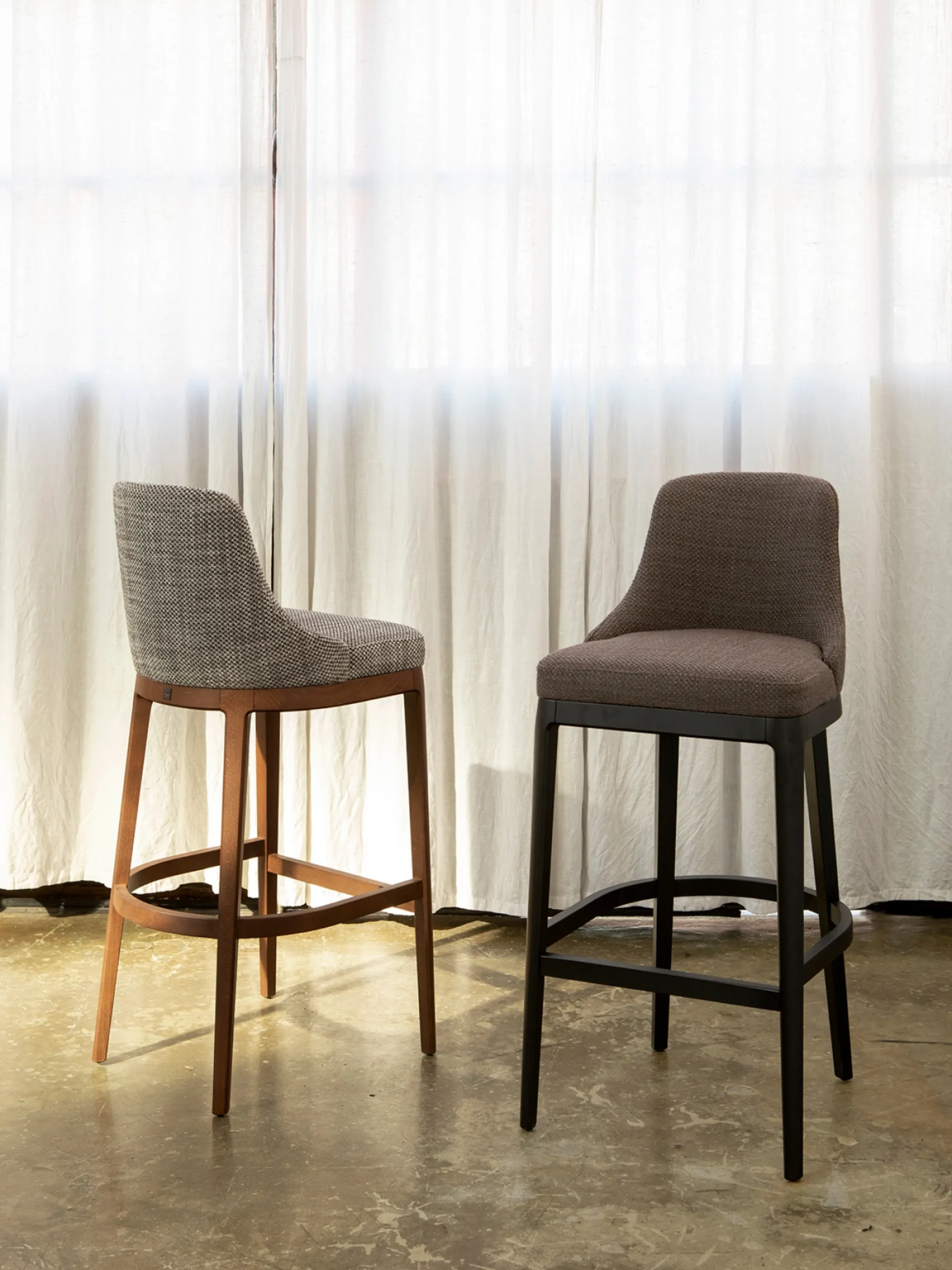 The Cleo Stool in wood and fabric by Tonin Casa present here is part of our collection of modern stool chairs