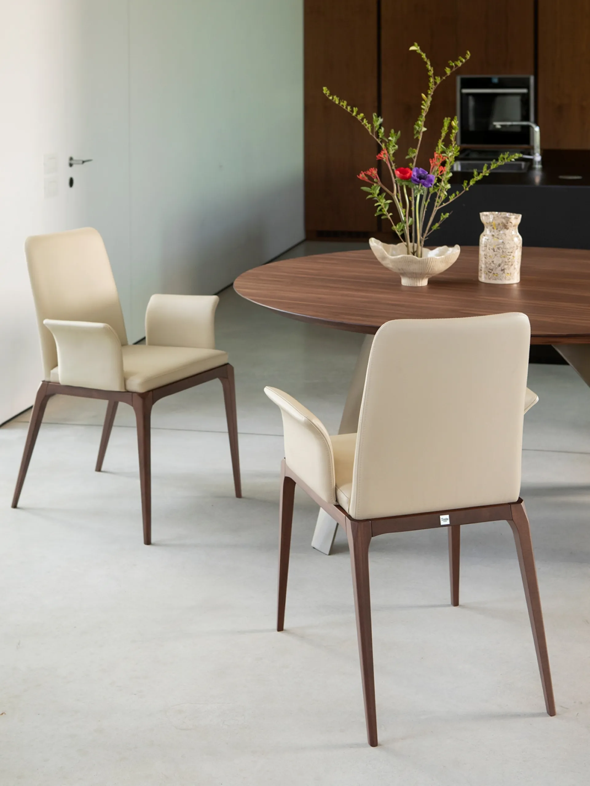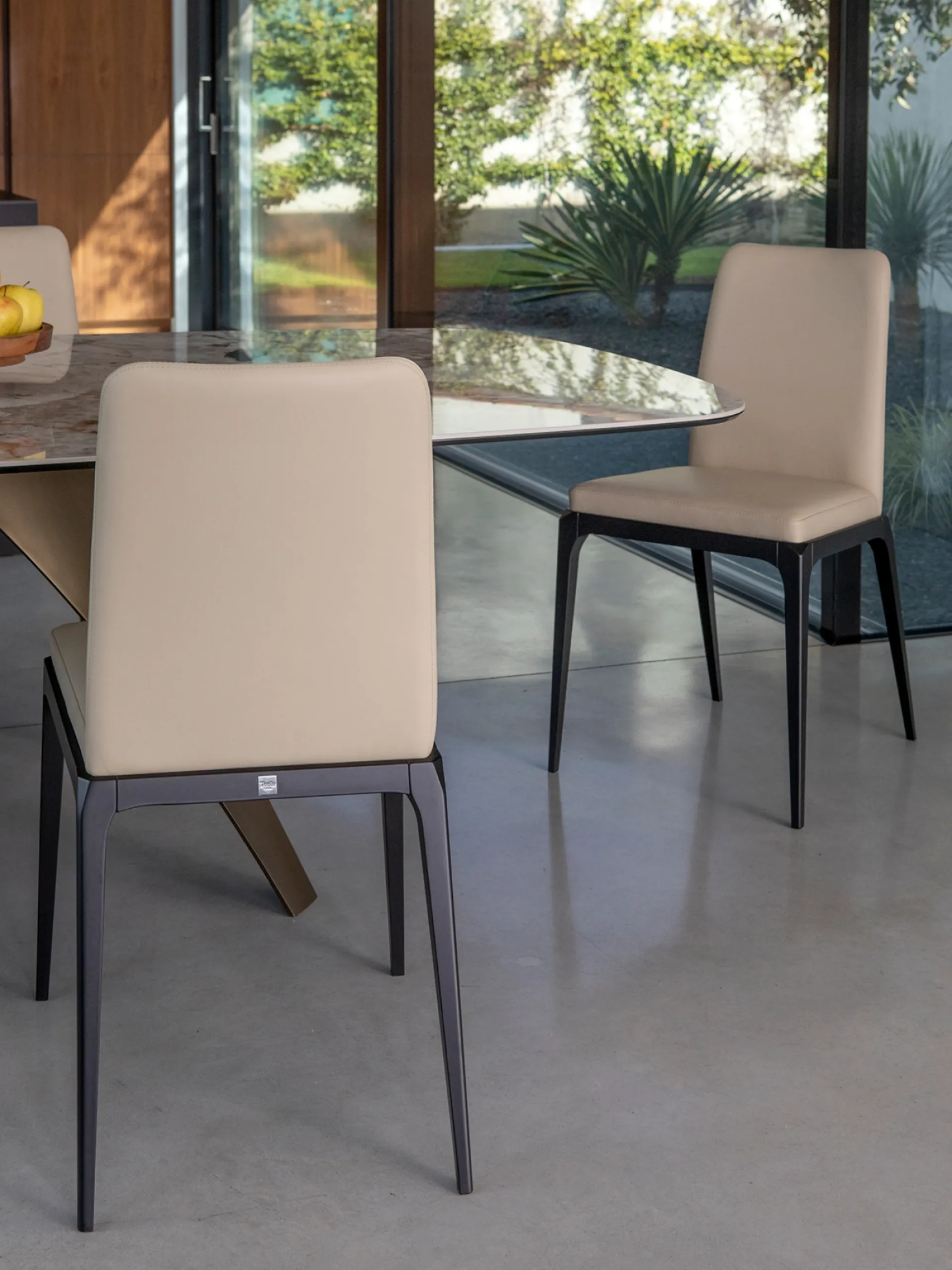 Every Tonin Casa solution guarantees a certain style regardless of the intended space, as it organizes and enhances the spaces. Chairs are among the essential furniture and accessories in every home, which is why we offer a wide range of solutions in our store for you to choose based on your taste. The Mademoiselle leather chair by Tonin Casa will excellently organize your dining room or living room, combining practicality and design. In our store, you will be able to see the most exclusive proposals on the market, including modern dining chairs signed by the well-known and renowned brand Tonin Casa. Besides being truly comfortable and ergonomic, this leather chair will ensure a serene everyday life in the spaces where you gather with friends and family.