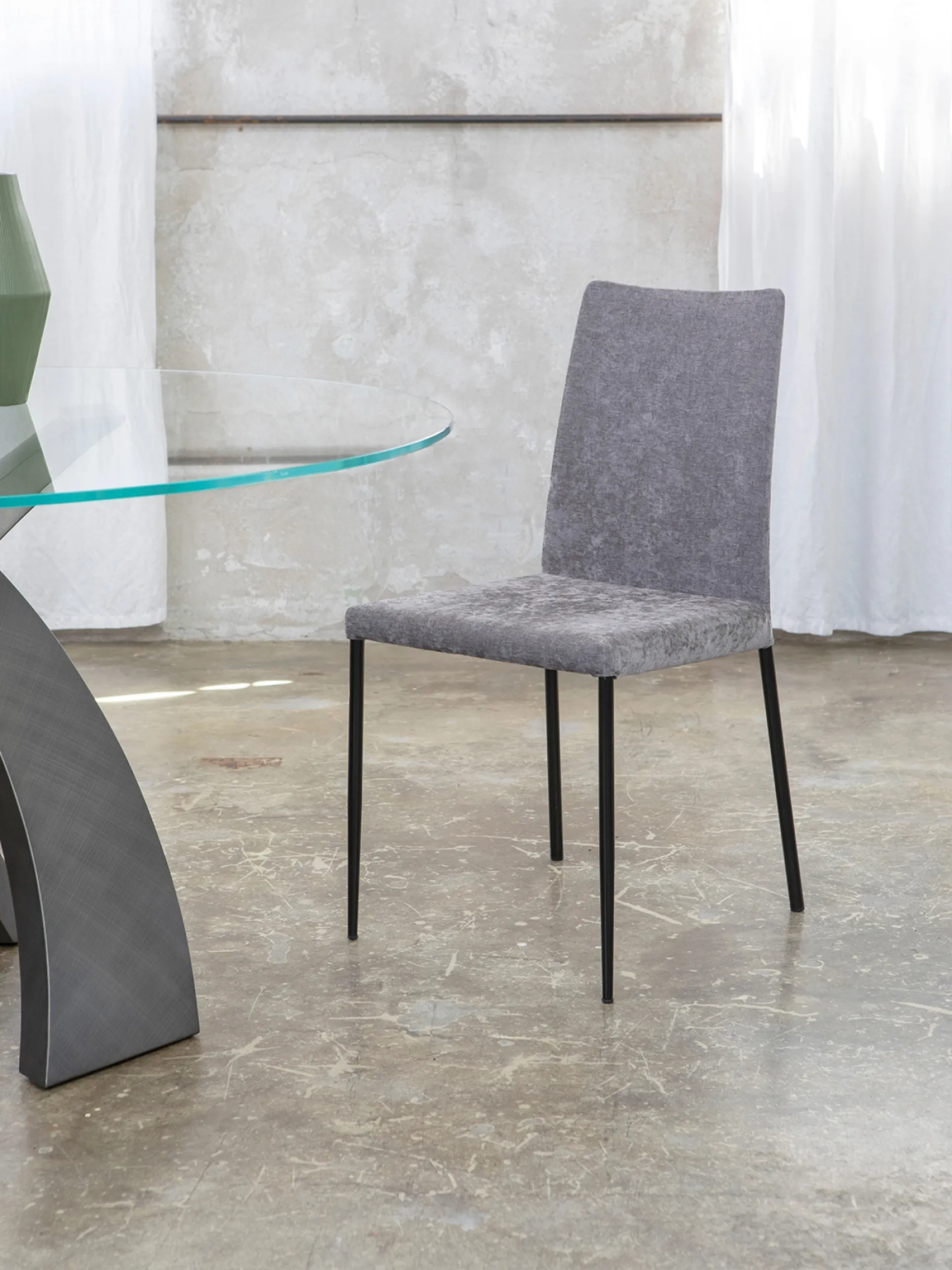 In the living room or in the kitchen, chairs are essential pieces of furniture: they enhance the mood of the environment and play an indispensable role. If you want a fabric chair to enhance the atmosphere of your home, get information about the model in the image and find a matching table. The living room and kitchen are not really welcoming and comfortable if furnished with the wrong chairs, that's why they must be matched to the rest of the furniture and the size of the room. Tonin Casa Spillo Fabric Chair: this model will customize spaces of any kind, especially modern atmospheres. A wide variety of fixed kitchen chairs awaits you in our showroom: contact us for information and quotes and optimize your spaces with the excellence that only Tonin Casa can guarantee for furniture and accessories.