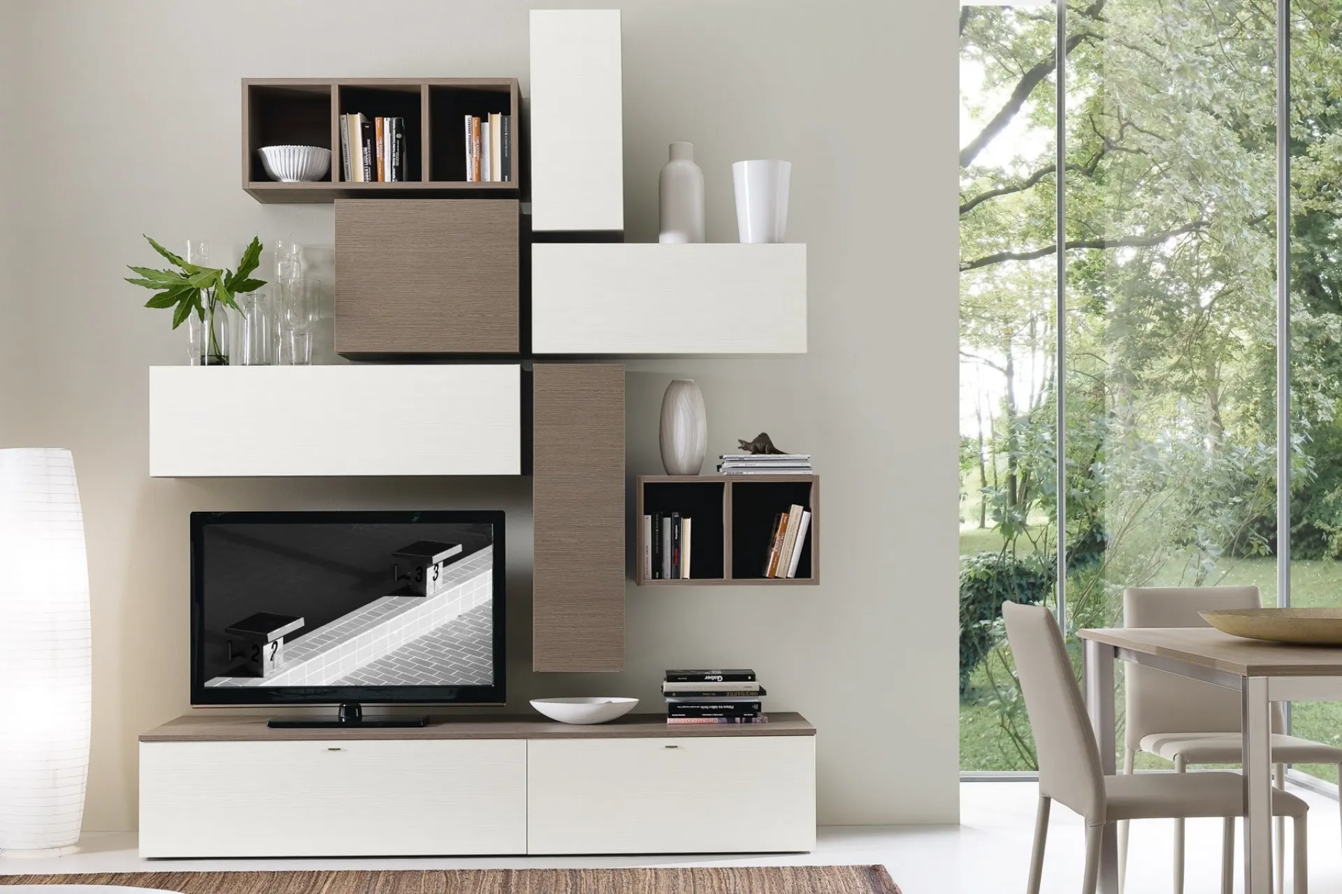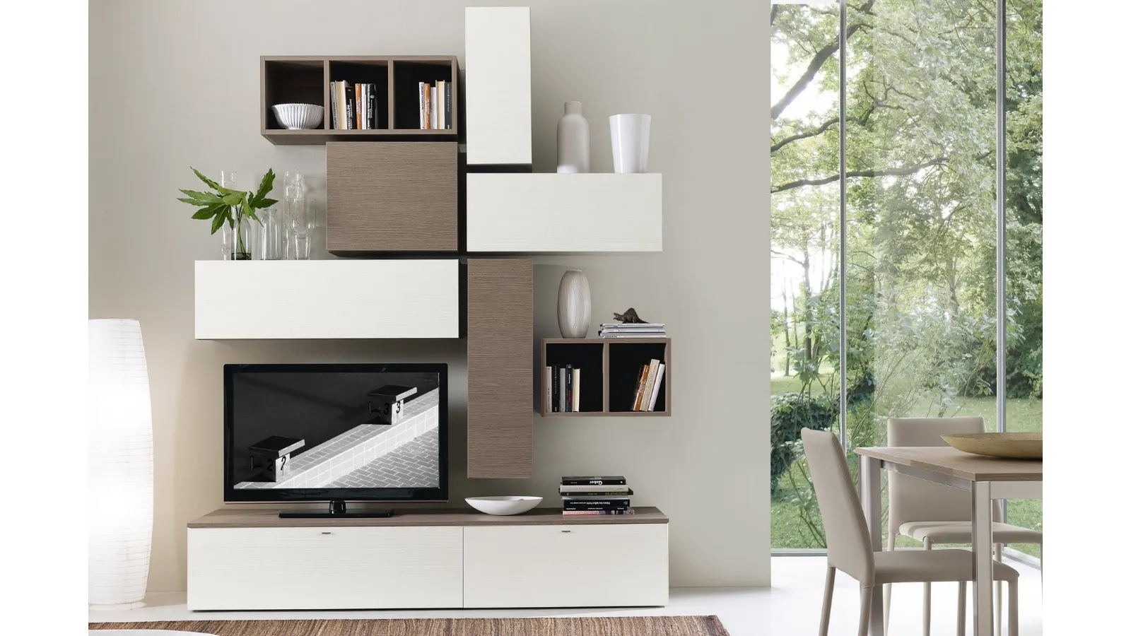 Wall system with modern lines and S75 melamine finish