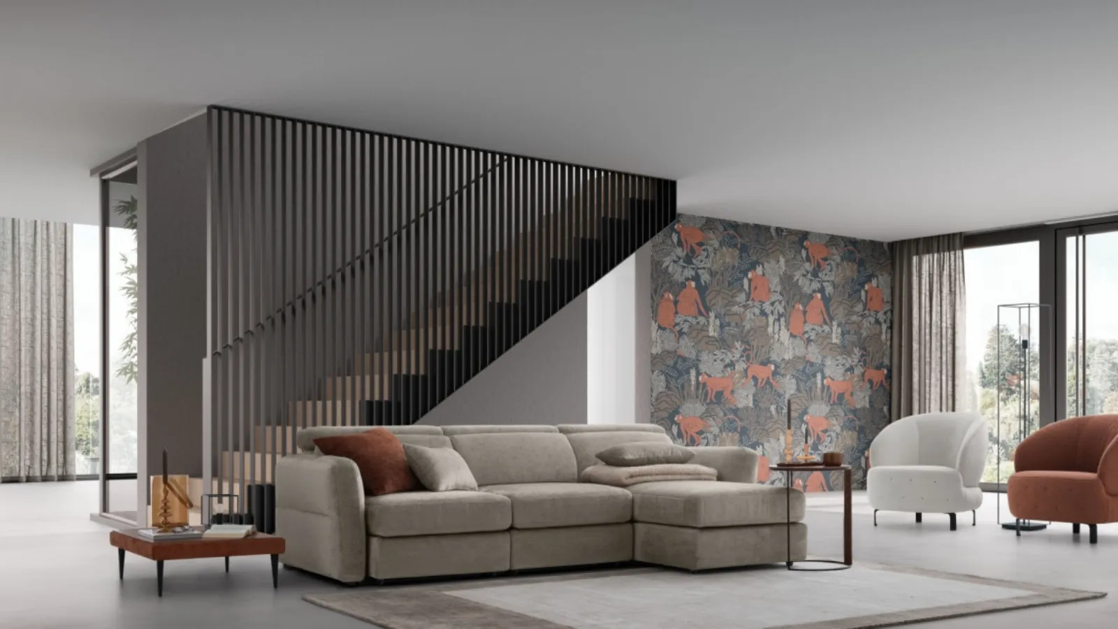 If you want sofas and armchairs with a chaise lounge like the model in the picture, characterized by inviting volumes for your moments of relaxation. Fabric sofa with chaise lounge, Hill Double model by Le Comfort: creates a welcoming and comfortable space in modern and elegant surroundings. Our living rooms are designed to be paired with various types of accessories, such as coffee tables, table lamps, floor lamps, or in combination with additional fabric sofas. The Le Comfort catalog offers different ideas to enhance the living environment in terms of functionality and aesthetic content, putting your comfort at the center. The sofa line of the brand in question presents different unique ideas to embellish the living room in the name of functionality, comfort, and style.