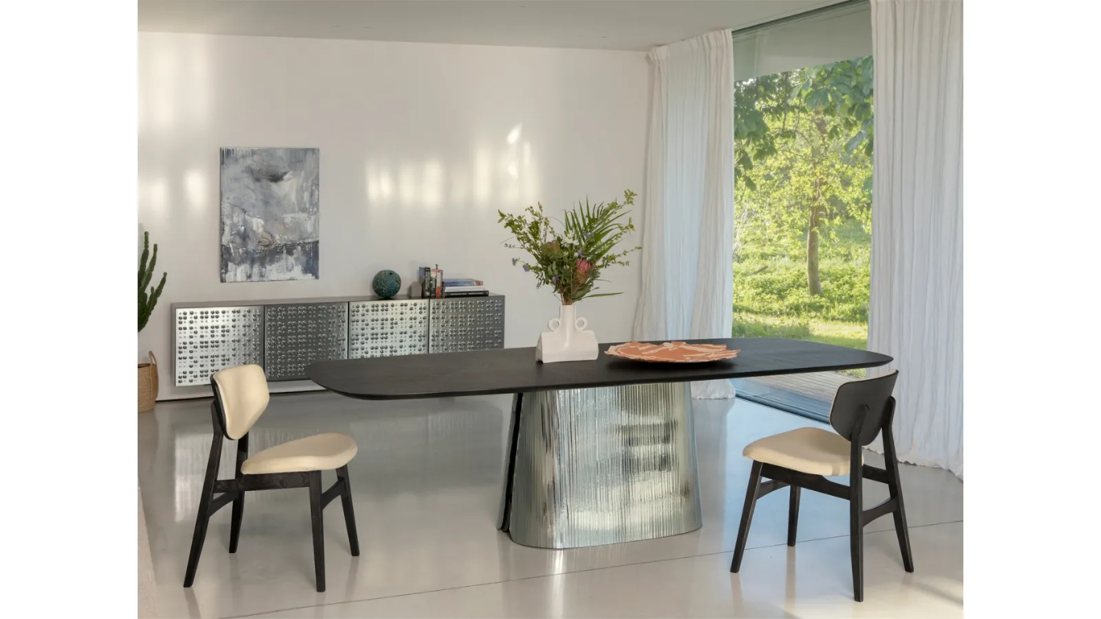 Adone Plissé dining model which is part of the collection of fixed design tables