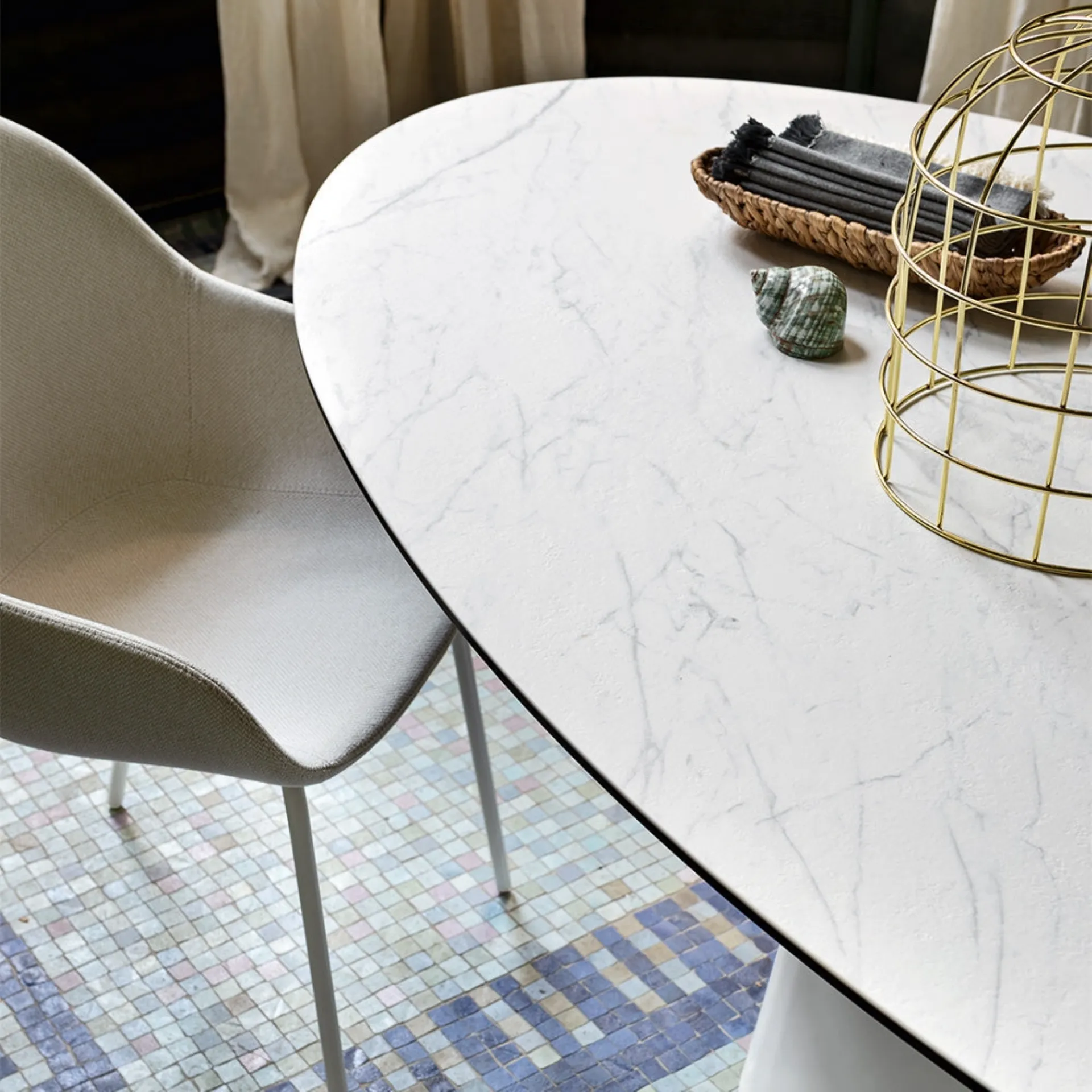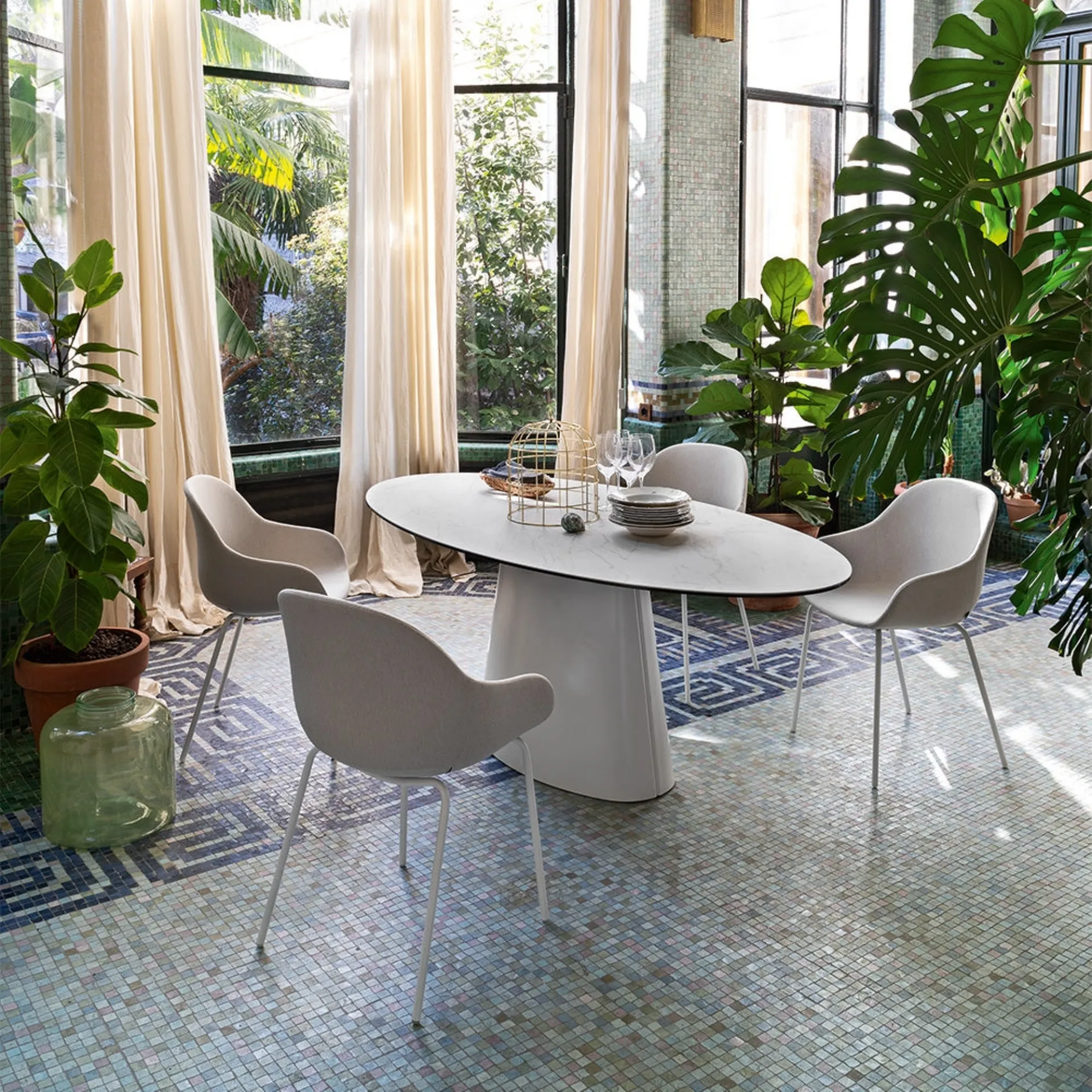 If you are looking for a high-quality dining table, contact us and receive information and quotes on the model visible in the photo. Connubia Ellisse Table: made of quality materials, it is characterized by the bold lines of the top and a refined and elegant base. The renowned brand Connubia, a leader in the production of ceramic furniture, has chosen a wide variety of materials, shapes, and tones for its line. Ideal for creating unique combinations with designer seats and accessories, the brand's fixed tables are among the most original solutions on the market, perfect for the living room and kitchen area. A model like the one in the photo, combined with the right seats, will complete the style of the rooms dedicated entirely to socializing.