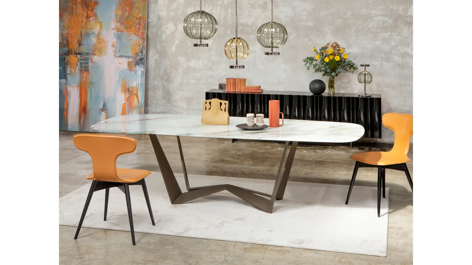 Quali sono le caratteristiche distintive del tavolo Reverse Artistic Glass di Tonin Casa?Il tavolo Reverse Artistic Glass di Tonin Casa si distingue per il suo piano in vetro artistico, che lo rende un vero elemento di design. La sua estetica unica lo rende un punto focale per qualsiasi ambiente moderno, combinando funzionalità e arte.
