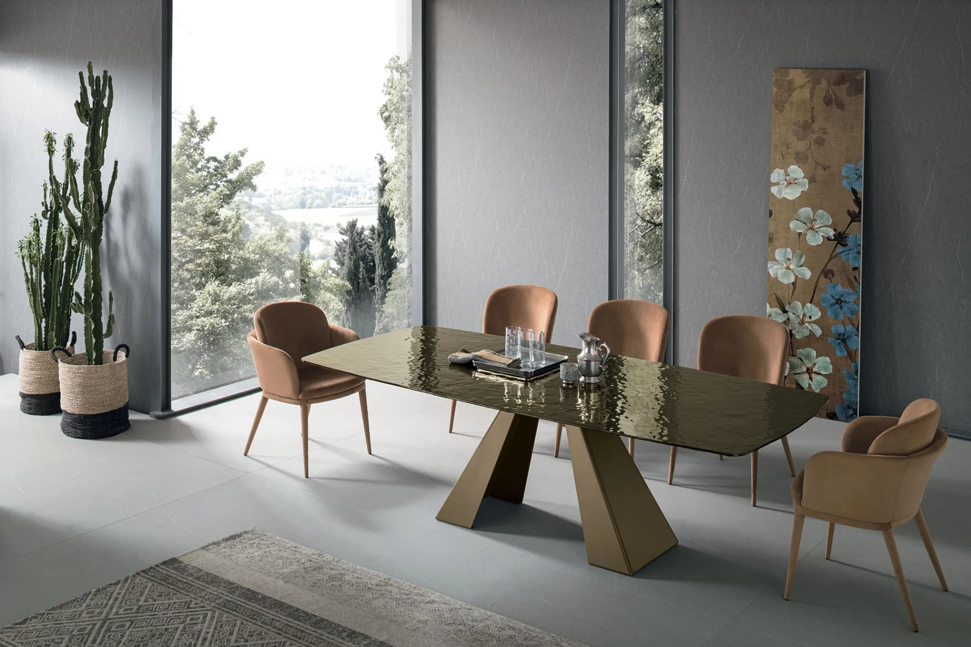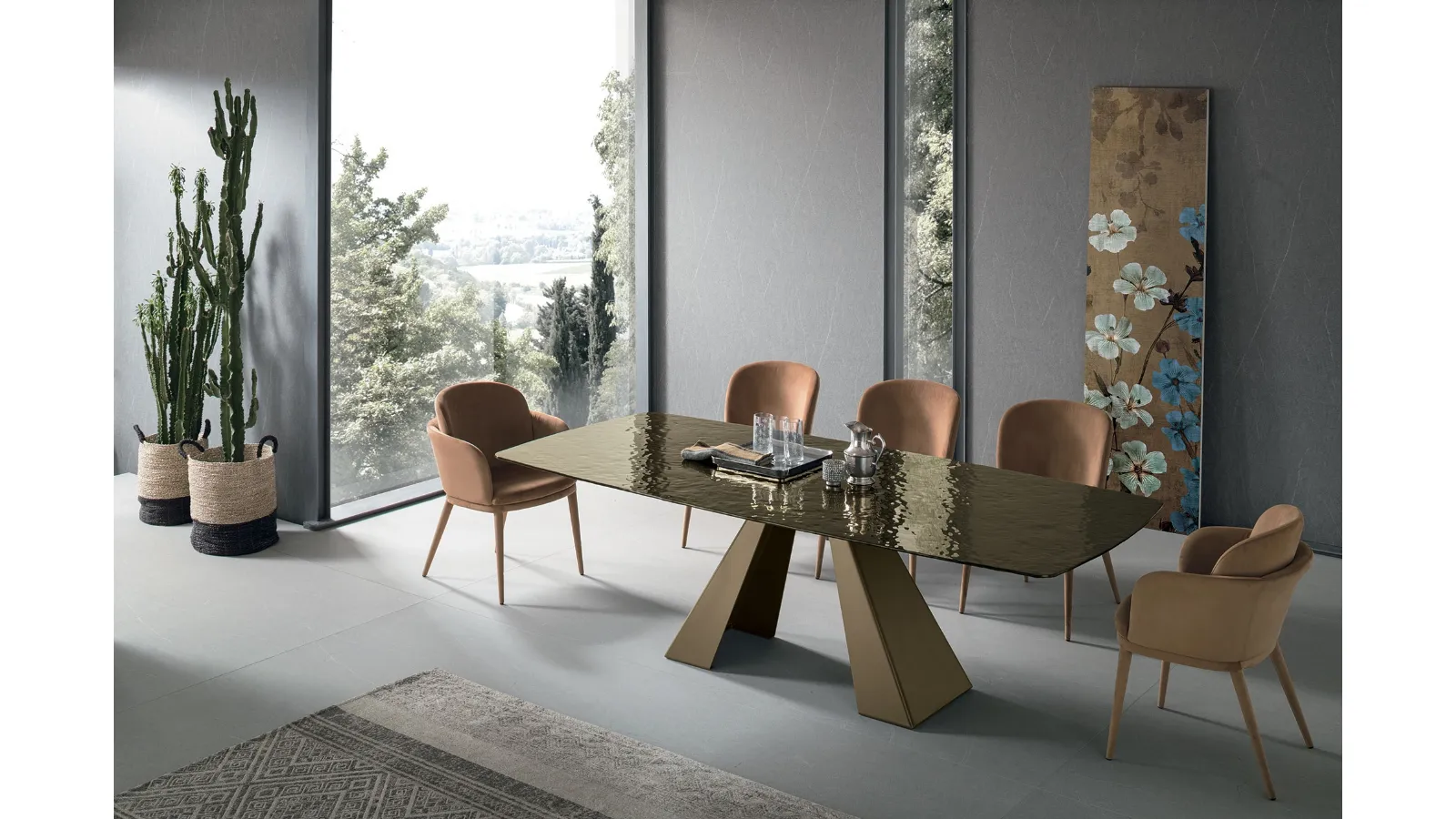If you desire a high-quality dining table, contact us and receive information and quotes on the model shown in the photo. Taurus Glass Dining Table by Target Point: made with fine materials, it is characterized by the strong shapes of the top and an elegant and sophisticated base. The well-known brand Target Point, a specialist in the production of glass furniture, has chosen a wide range of finishes, shapes, and tones for its collection. A model like the one in the image, paired with the right seats, will complete the mood of the dedicated hospitality rooms in your home. Ideal for creating unique combinations with design seats and accessories, the brand's fixed tables are among the most beautiful solutions in the market, perfect for the living room and kitchen.