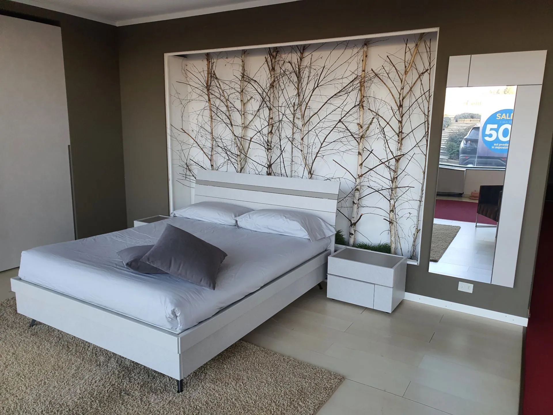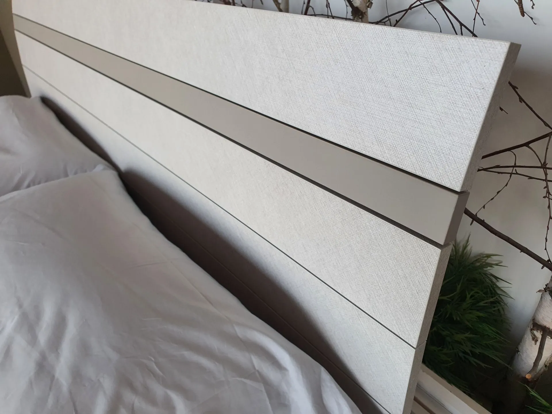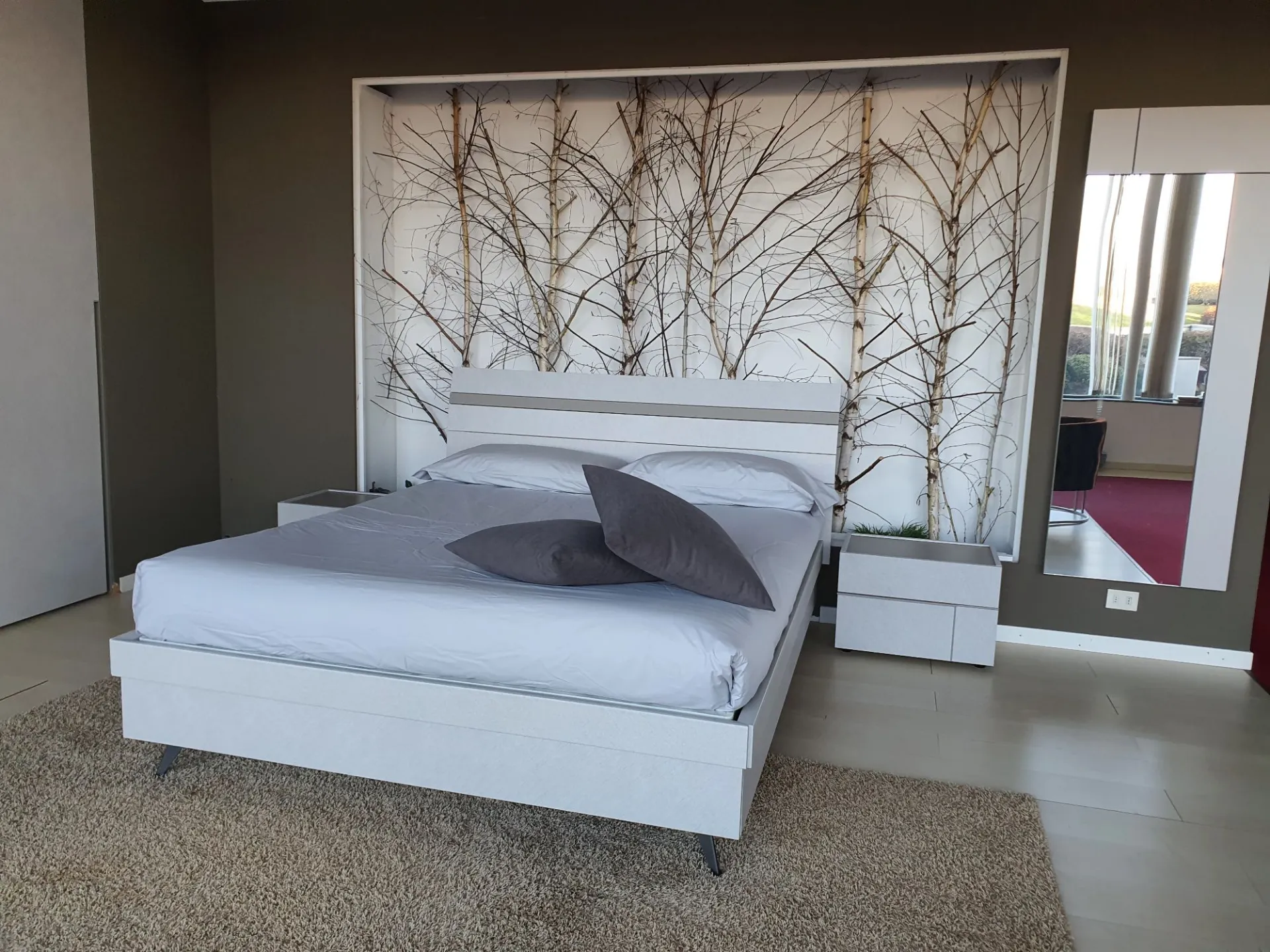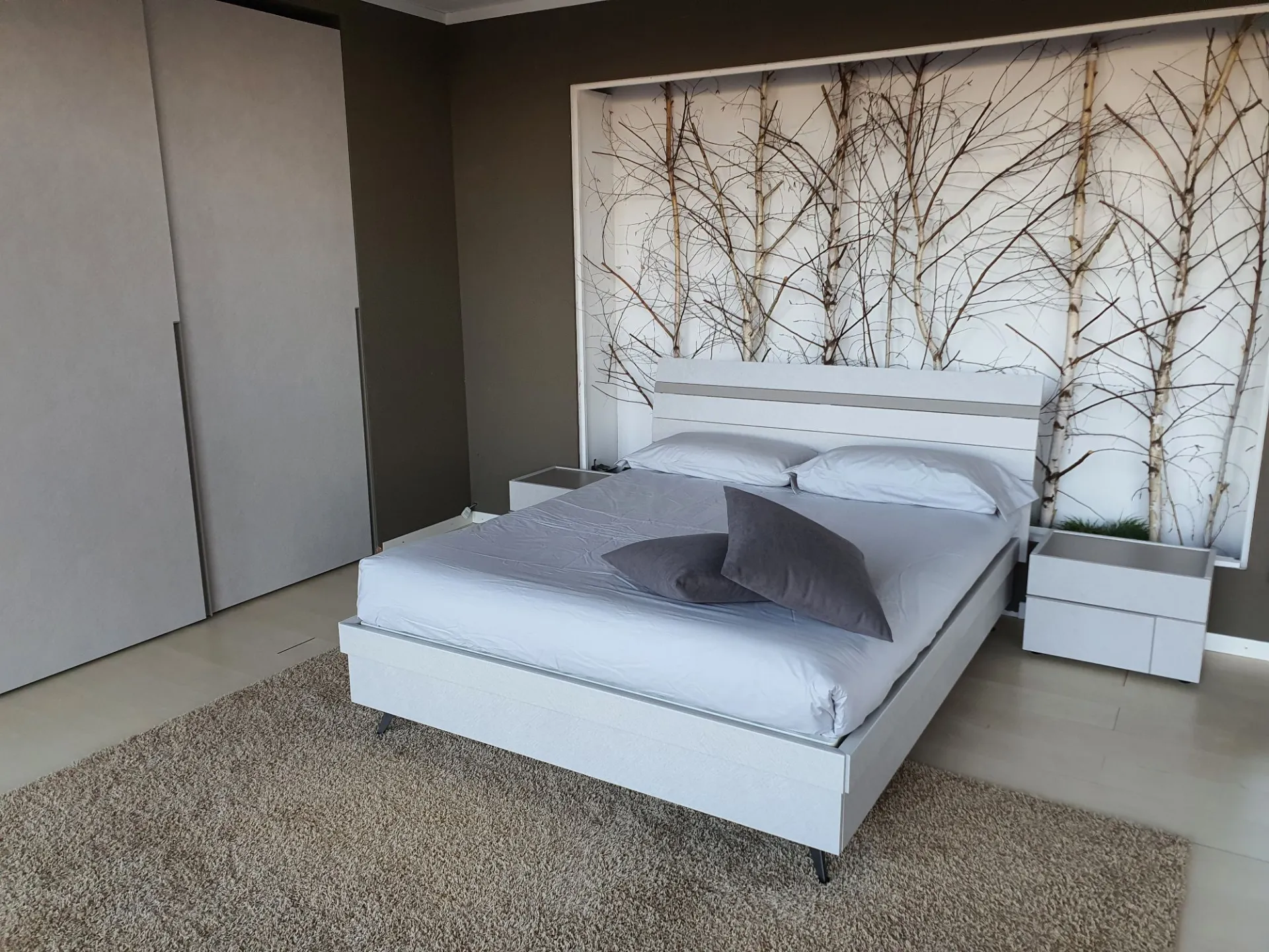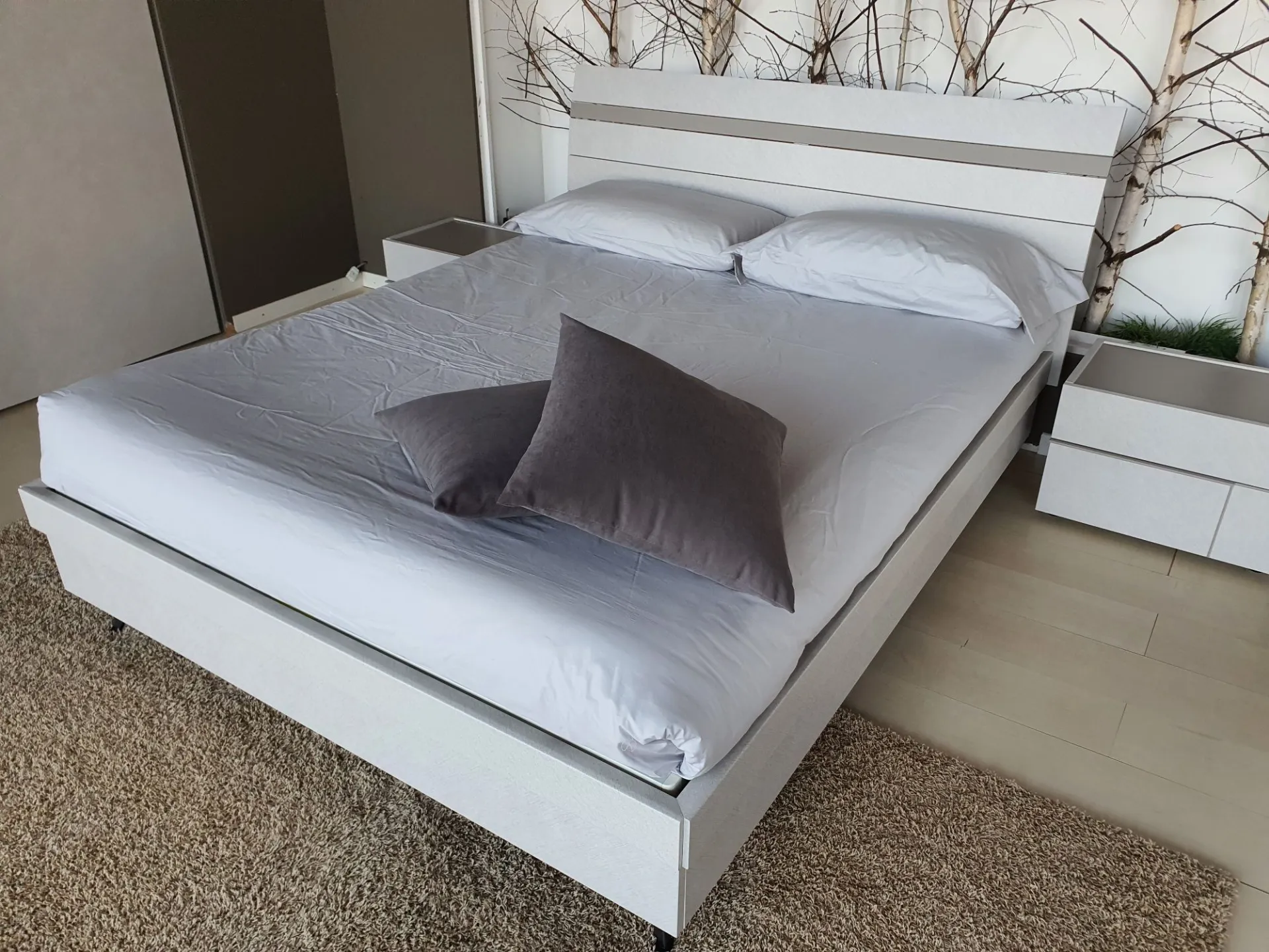 Double bed with storage mod.JOKER with a lift-up slatted bed base measuring cm.160x200 in CANVAS finish and with a matte texture ARENA border. The bed is elevated from the ground thanks to the anthracite-colored metal feet, allowing for easy cleaning underneath the bed. The overall dimensions are cm L.176xP.217xH.95 and the slatted bed base measures cm 160x200. Product available for immediate delivery! Contact us for more information!