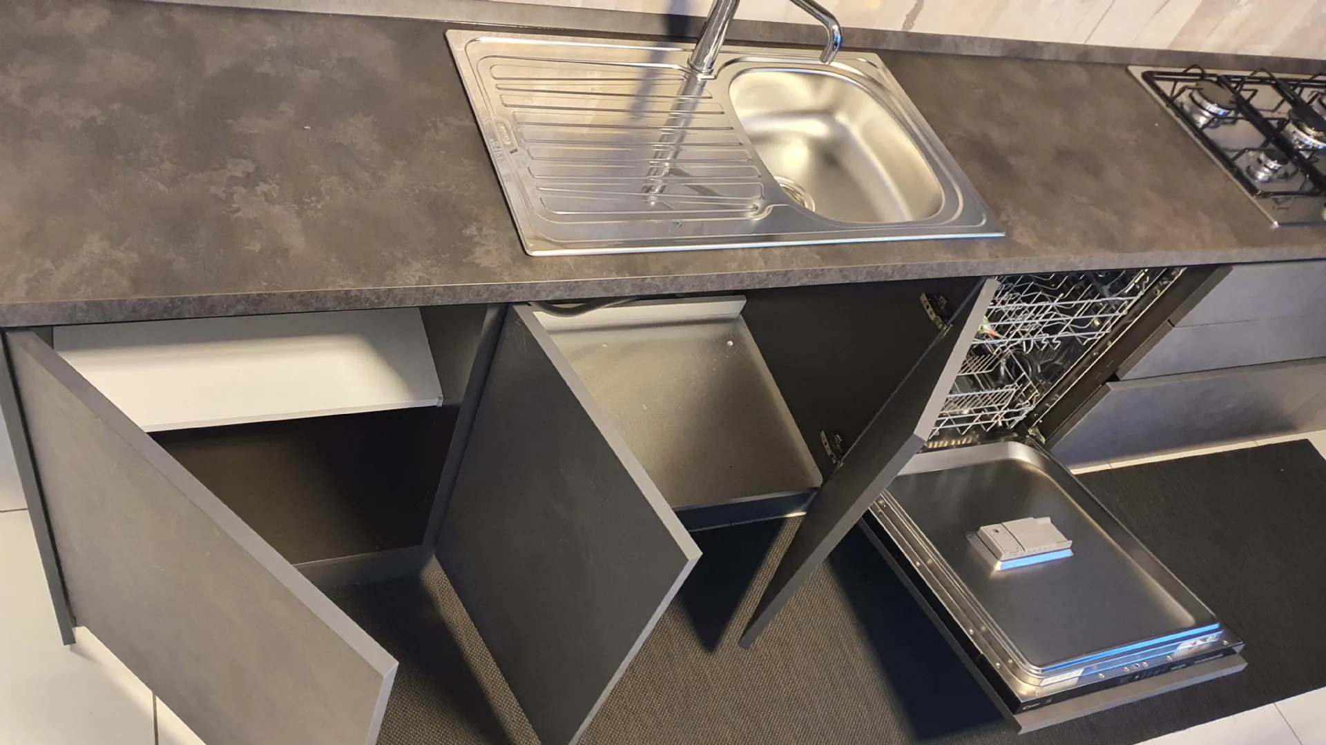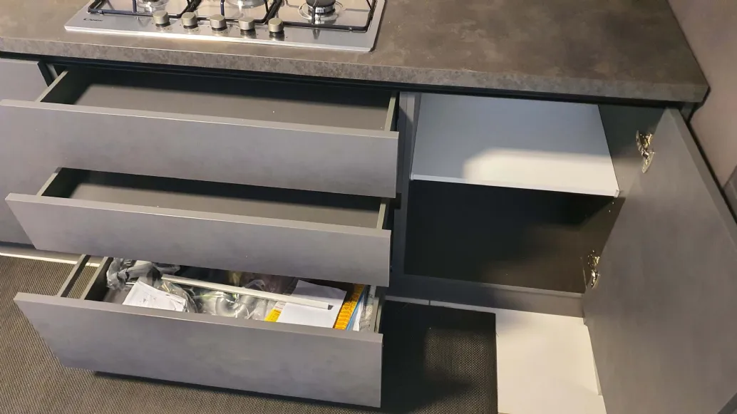 The hinges and guides of drawers / baskets are HETIC with cushioned closure. Plinth H.12 in anthracite color. The CANDY&appliance package is included in the price Iltopè inlaminatofinishingVULCANOsp.4cmwithcoordinatedaltop The sink&is; large with drip tray and in stainless steel, material in typesù practical and hygienic in the kitchen. Measurement cmL.363.6 123x216h POSSIBLE CUSTOMIZATIONS: