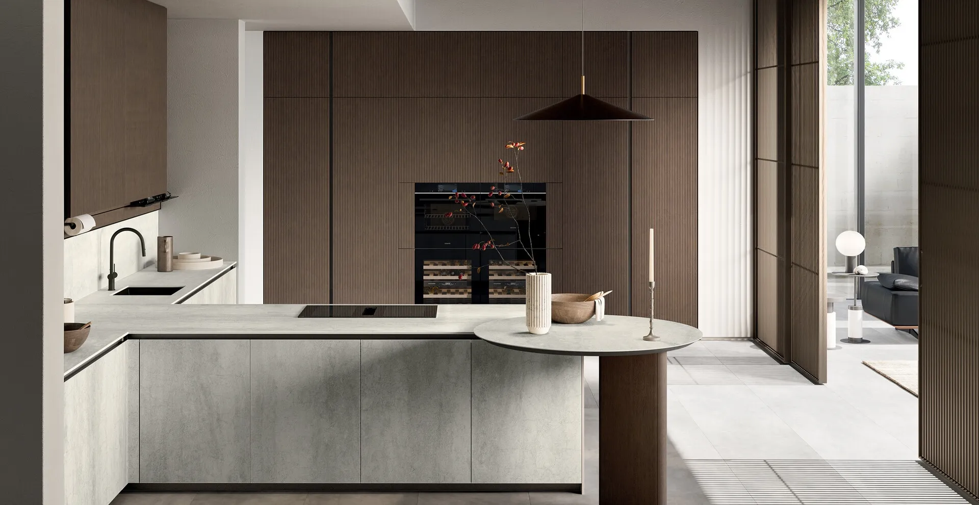 Different modern proposals with a peninsula for the kitchen area are waiting for you, ideal for those looking for a family-friendly, practical, and comfortable space but contemporary in style. If you desire a solution with geometric lines, characterized by a less "heavy" design, we recommend choosing a Modern Kitchen from the Arredo3 brand. When choosing a modern kitchen, you should prioritize the way you live in your spaces to furnish your composition of furniture optimally.