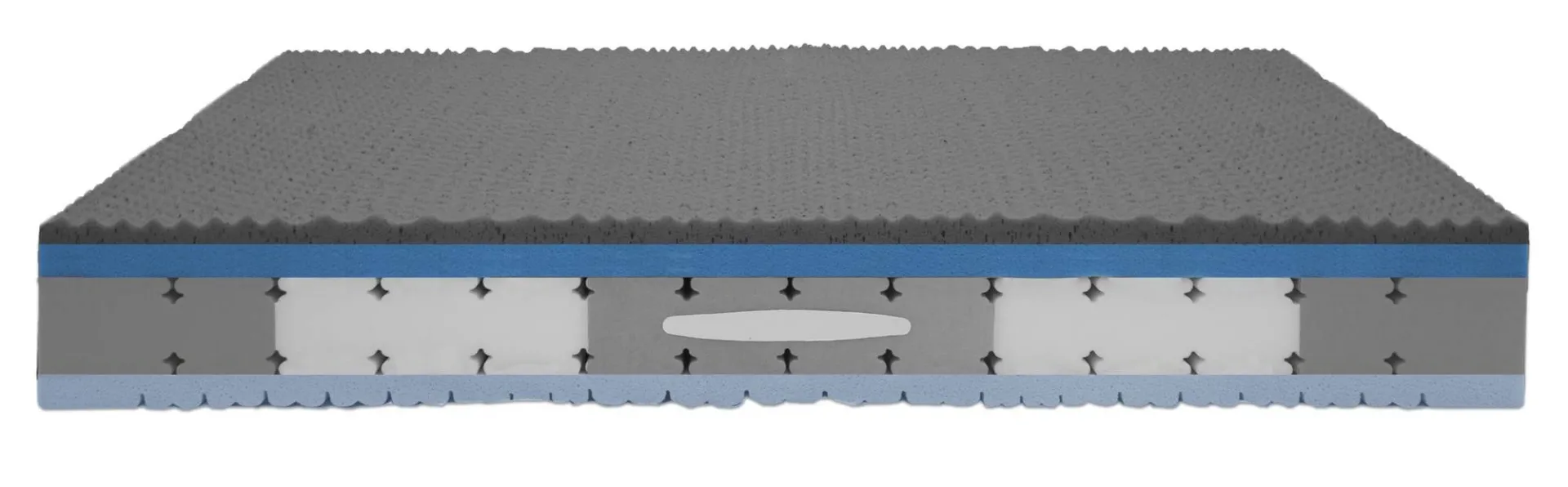 | Materiale: | Tessuto: Resistex Bioceramic (fibra a cristalli bio-ceramici, 240 gr/mq), Lato invernale: Imbottitura 350 gr/mq in lana, Lato estivo: Imbottitura 350 gr/mq in cotone, Lastra: Fonteverde a 5 zone differenziate, lavorazione a cubi indipendenti, Strato da 3 cm di GEL MEMORY con grafite, Strato di 2 cm in Sanity (viscoelastico FlorentiaFoam densità 52 kg/mc), Imbottitura da 2cm in EvoMemory |