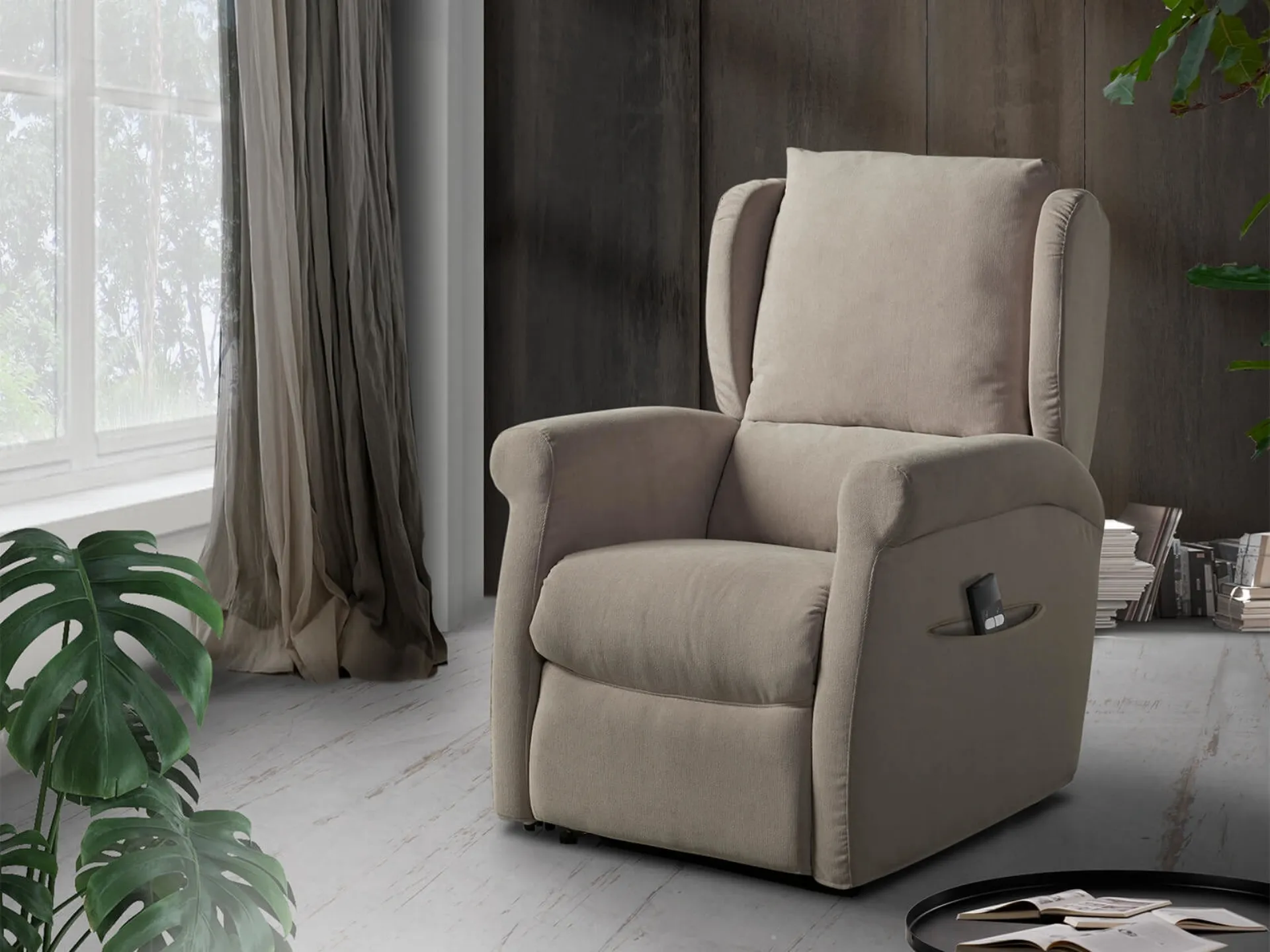 Discover a large variety of upholstered furniture and you will be able to create the spaces you've always wanted. Vitarelax, leader in the production of relaxation armchairs, has created an elegant and refined fabric covering for the model in the photograph. The relaxation armchairs are a truly essential element in different rooms, from the living room to the rest area, environments to be carefully designed. The upholstered items with relaxation or lift-up movement are furnishing modules around which to spend moments of rest and conviviality.