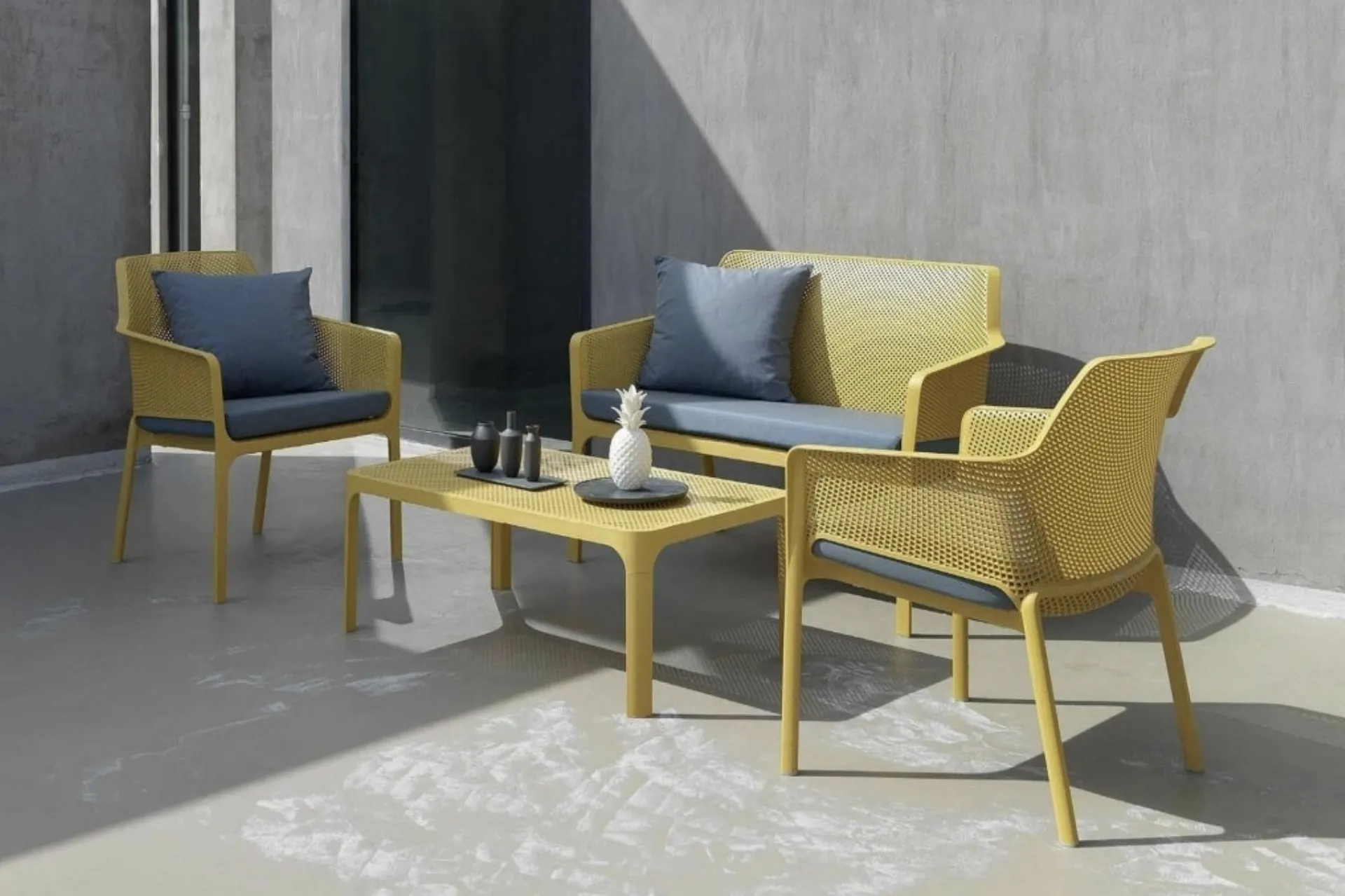 Sono disponibili istruzioni per la manutenzione e la cura dell'arredo giardino "Net"?Certo, ogni cliente riceve un manuale di manutenzione e cura per i mobili acquistati. Offriamo anche servizi di manutenzione periodica a pagamento per preservare al meglio il tuo arredo.