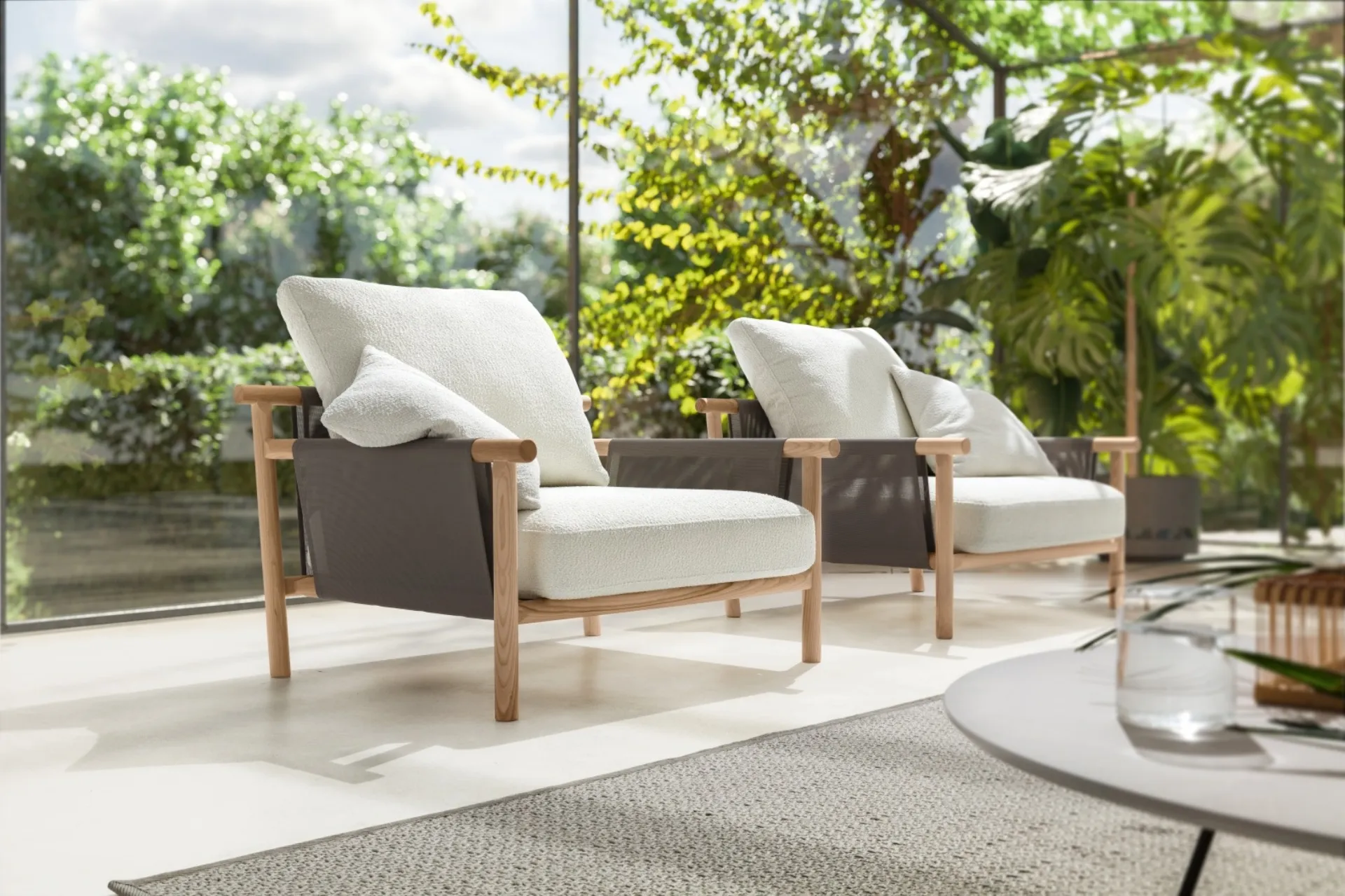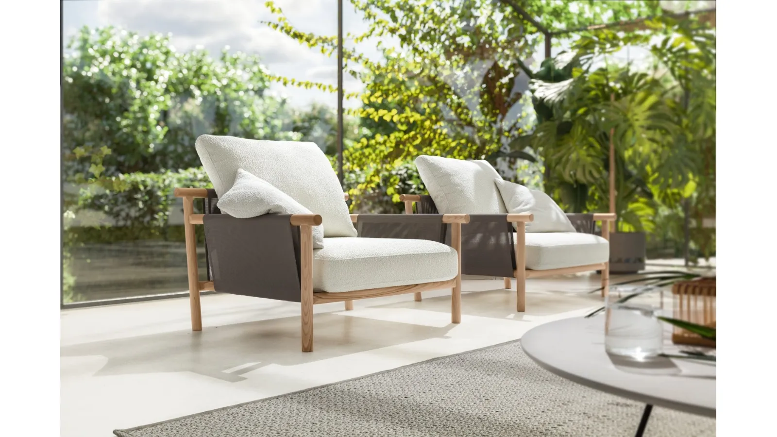 Discover our line of garden armchairs in fabric from Ditre Italia: the Poltrona Isamu model, featured in the photo, awaits you.