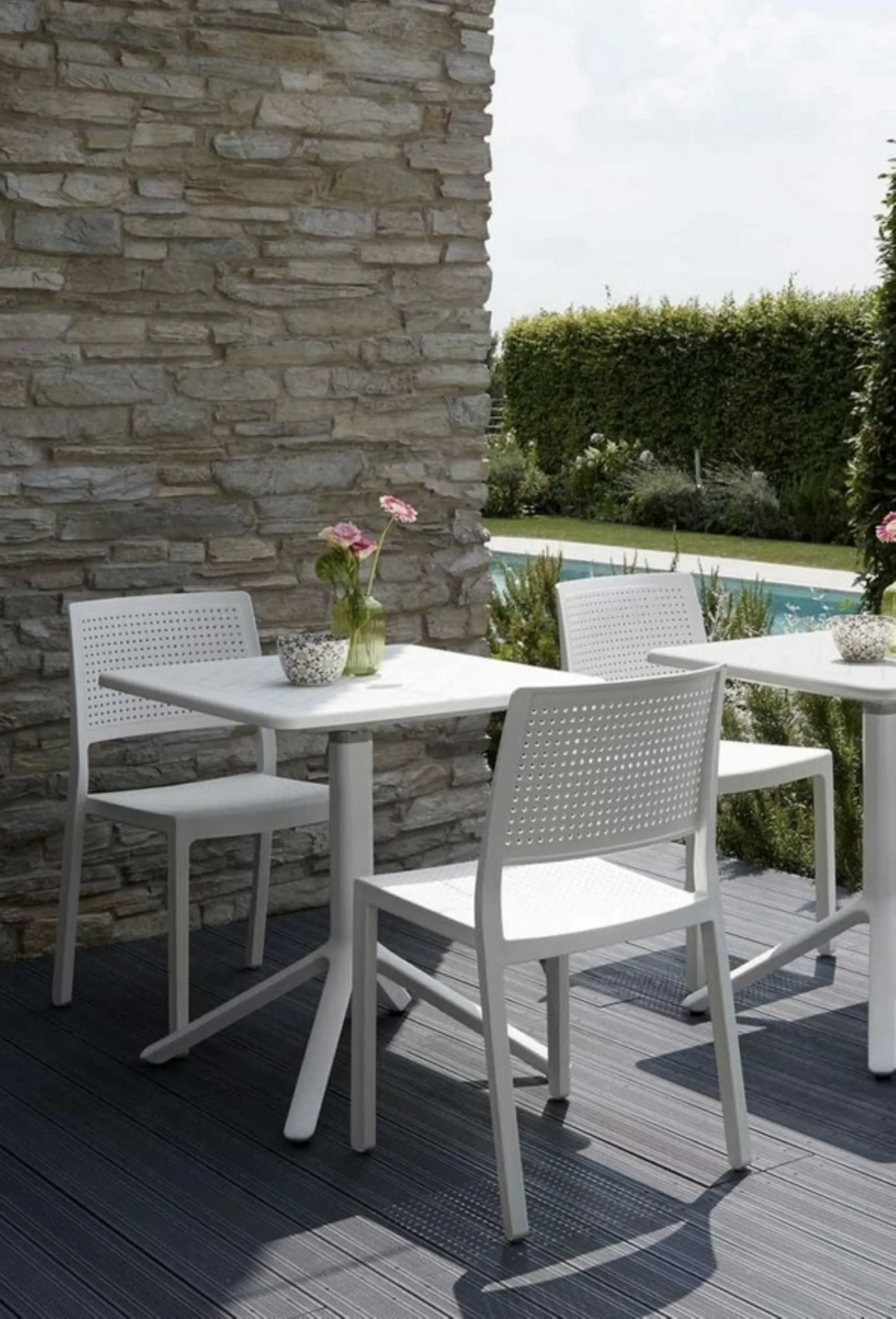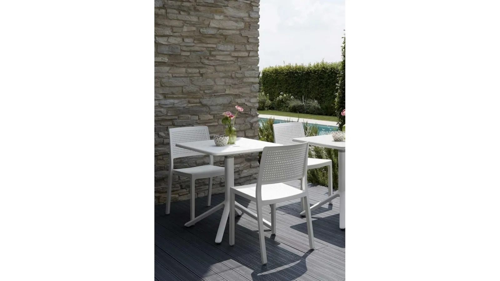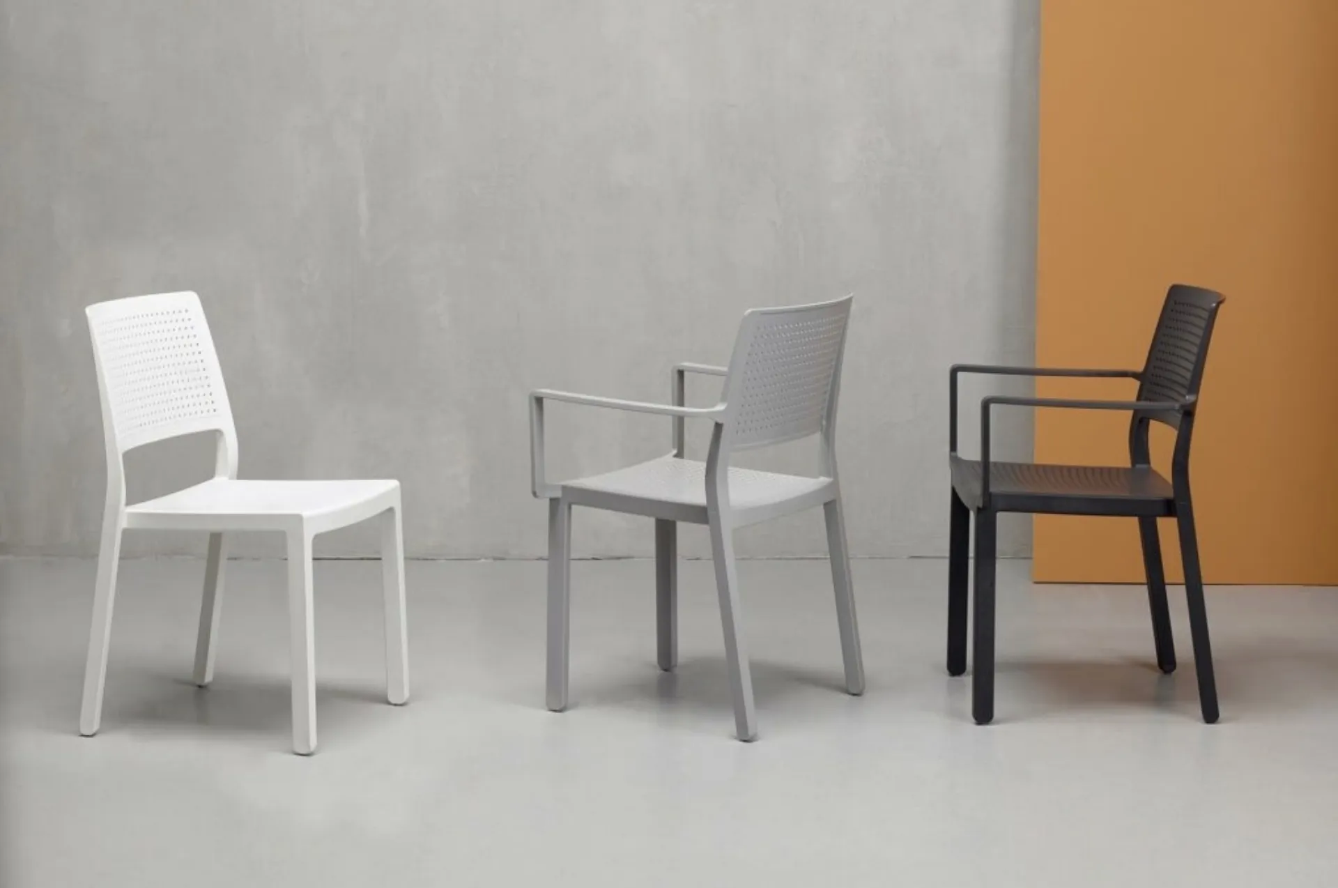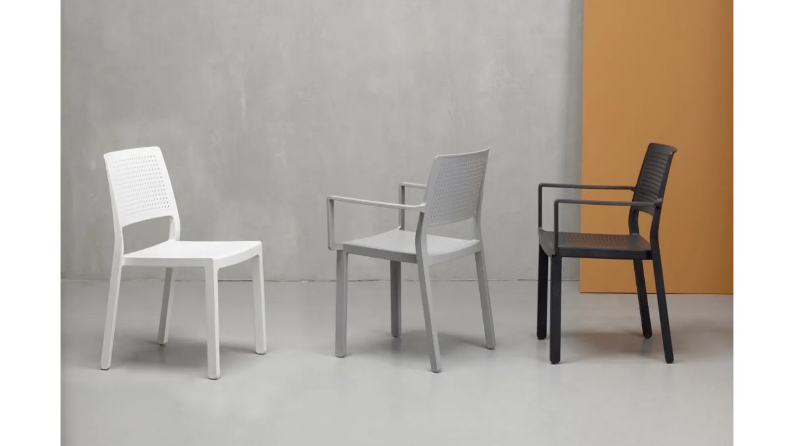 Discover our garden furniture and chairs: the Katy F model in plastic shown in the photo is waiting for you.