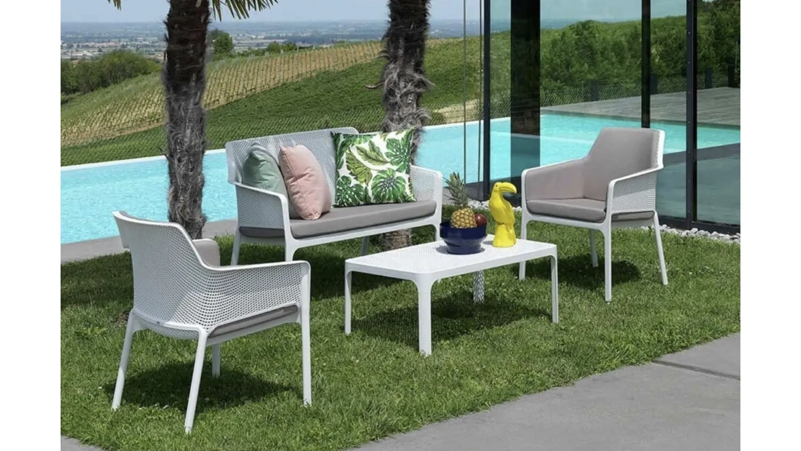 Come si effettua la manutenzione dell'arredo giardino Net per garantirne una lunga durata?La manutenzione dell'arredo giardino Net è semplice e richiede una pulizia periodica con acqua e un detergente neutro. I materiali impiegati sono progettati per resistere agli agenti atmosferici e mantenere la loro bellezza nel tempo con minimi sforzi.