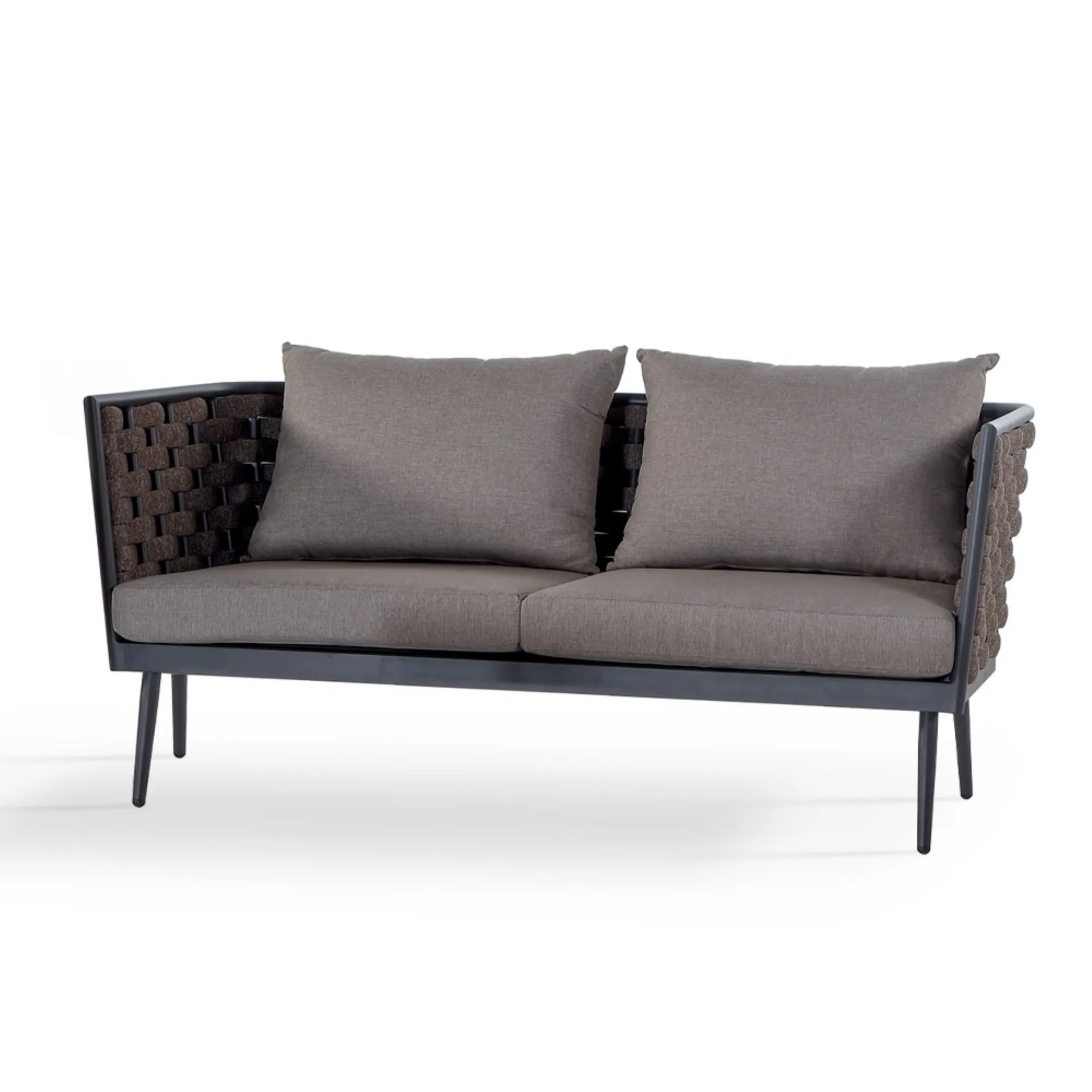 Il divano per esterni Nice Divano Art. 1823/3 di La Seggiola è un esempio di ingegneria e design per ambienti outdoor. La sua struttura portante è realizzata in alluminio verniciato antracite, garantendo un'elevata resistenza alla corrosione e una notevole stabilità. Il rivestimento è composto da corda di poliestere con gomma interna marrone, un materiale specificamente selezionato per la sua durabilità e capacità di mantenere colore e integrità strutturale anche in condizioni climatiche avverse. La cuscineria del sedile, in tessuto acrilico marrone, è stata progettata per essere completamente sfoderabile, semplificando le operazioni di pulizia e manutenzione. Questo dettaglio funzionale prolunga la vita utile del prodotto e ne preserva l'estetica. Le dimensioni complessive del divano, pari a 165 cm di larghezza, 79 cm di profondità e 70 cm di altezza, sono ottimizzate per offrire ampio comfort senza compromettere la versatilità di posizionamento. L'attenta selezione e la combinazione dei materiali di alta qualità assicurano non solo un'estetica raffinata, ma anche prestazioni superiori e una longevità eccezionale.
