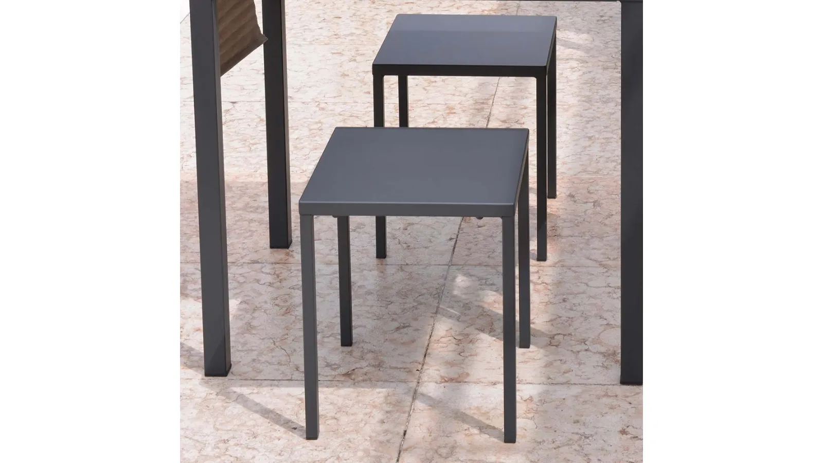 Qual è lo stile o il design caratteristico dello sgabello basso Out Metal di La Seggiola?Lo sgabello Out Metal di La Seggiola presenta un design moderno e funzionale, tipico dell'arredo per esterni. La sua struttura metallica gli conferisce un aspetto essenziale e contemporaneo, facilmente integrabile in diversi contesti outdoor.