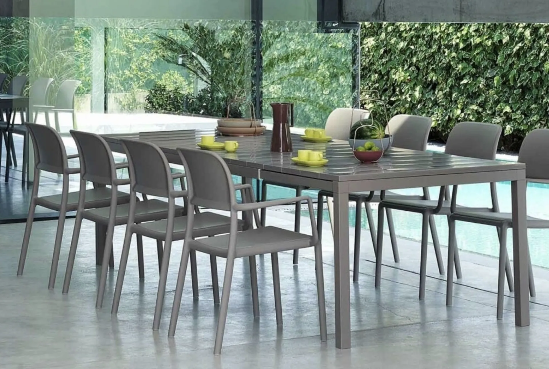 Discover our garden furniture and chairs: the plastic Riva model featured in the photo awaits you.