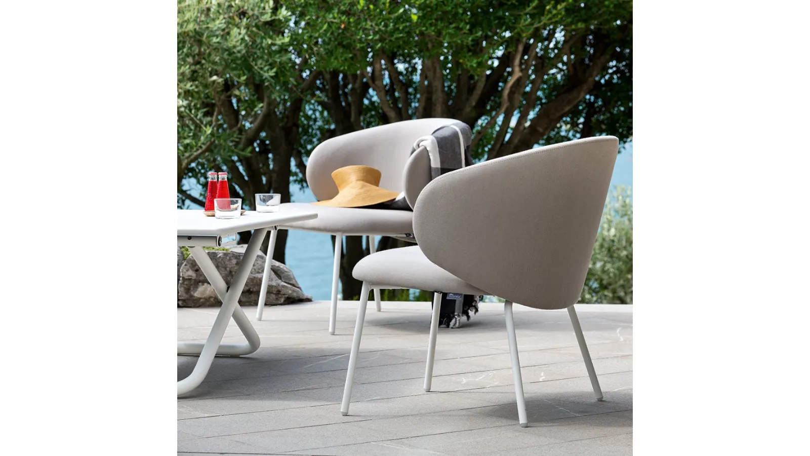 | Materiale: | Metallo tubolare (struttura), Polipropilene riciclato 100% o imbottitura drenante (seduta e schienale), Tessuto Sunbrella® idrorepellente (rivestimento) |