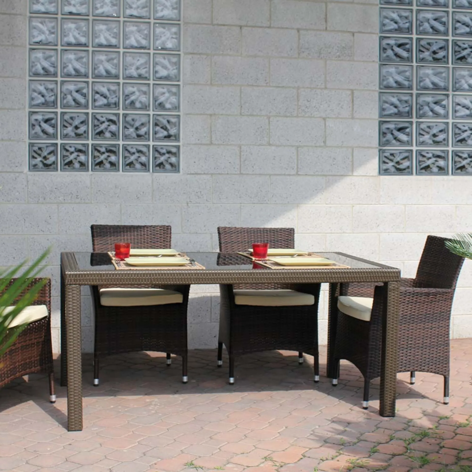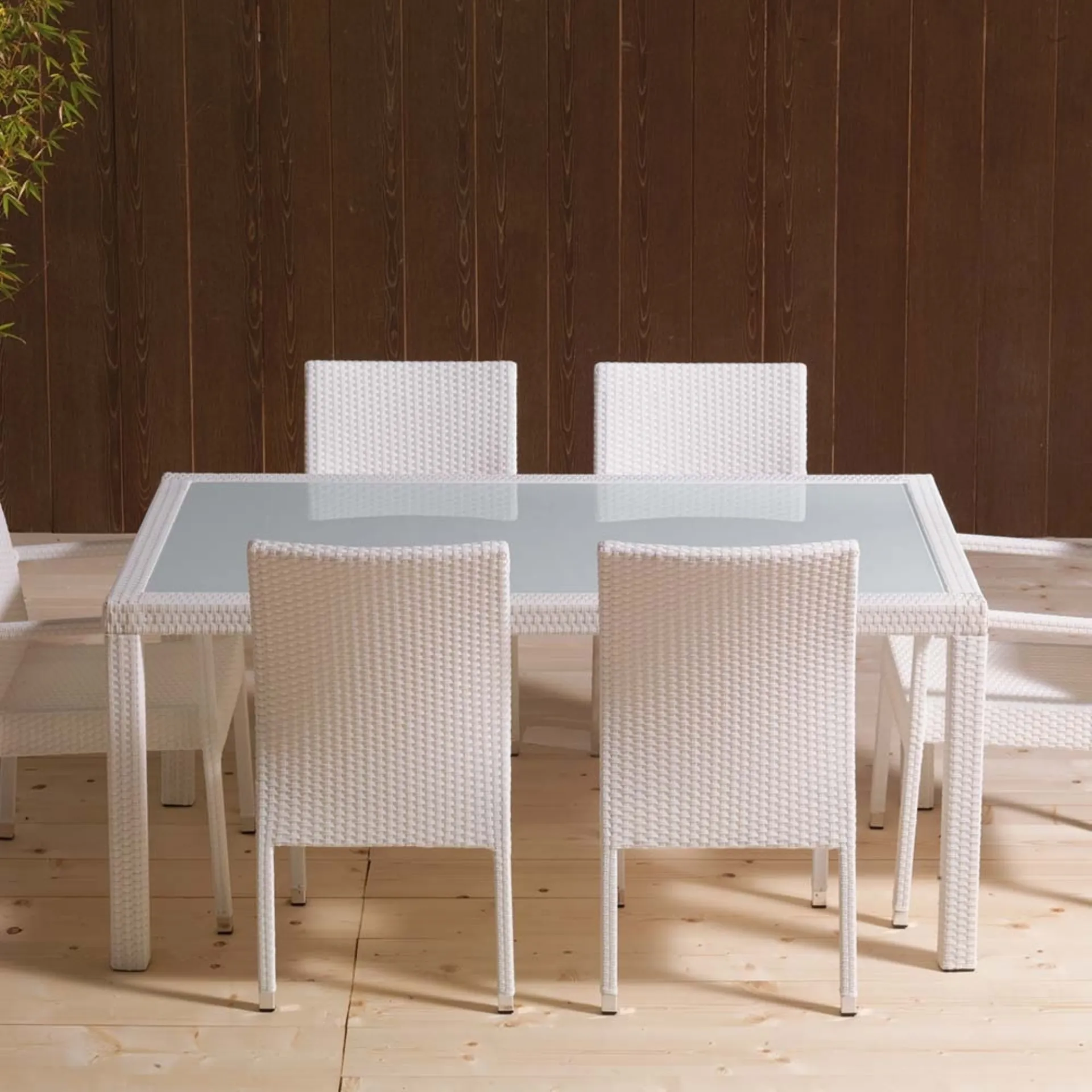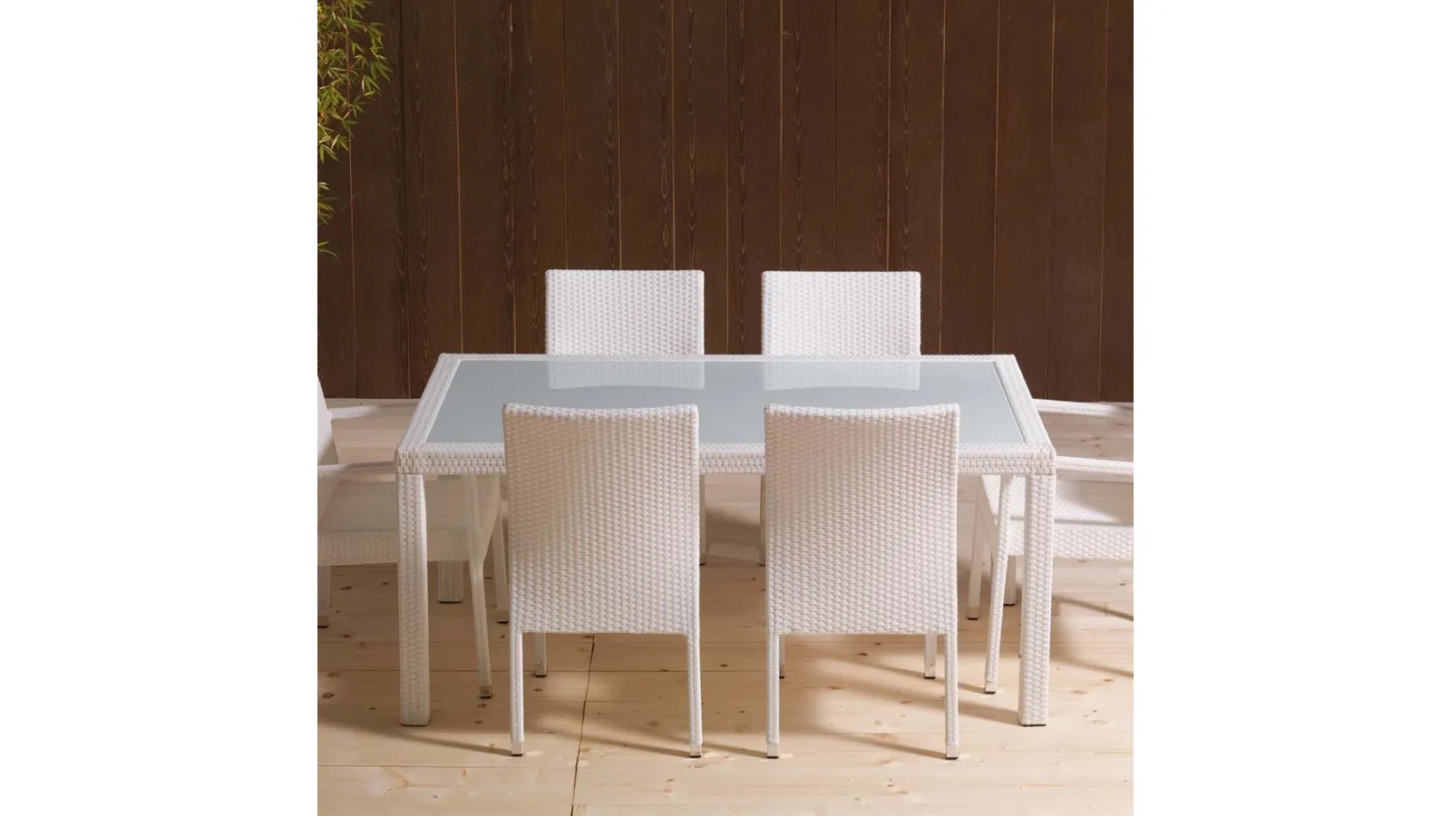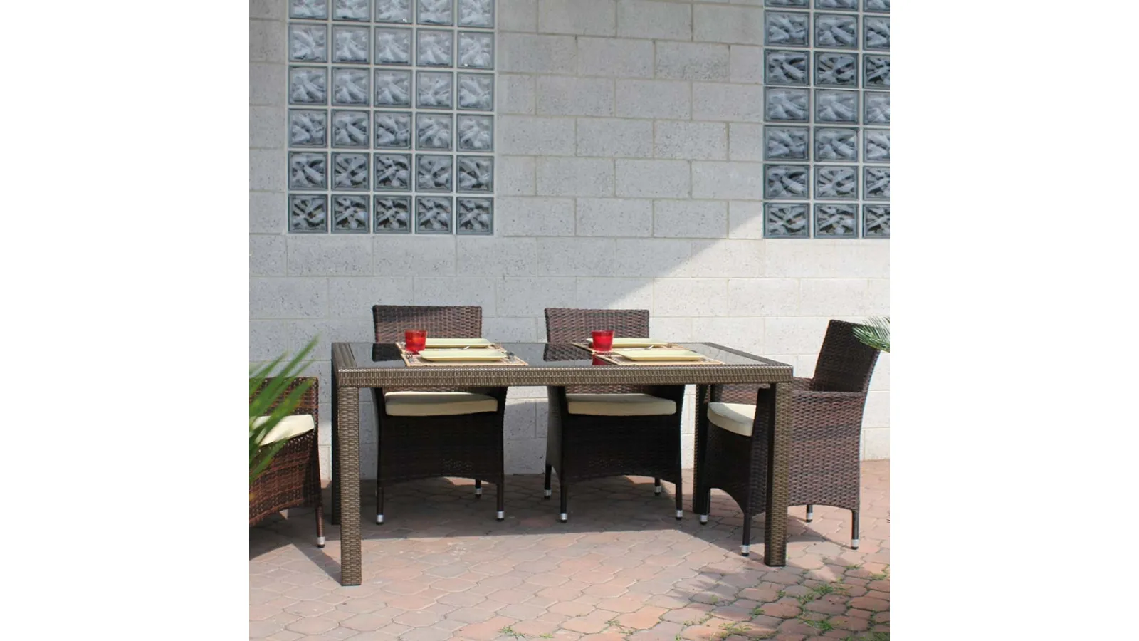 Discover our outdoor furniture and garden tables: the Wicker Table model with glass top, visible in the photo, awaits you.