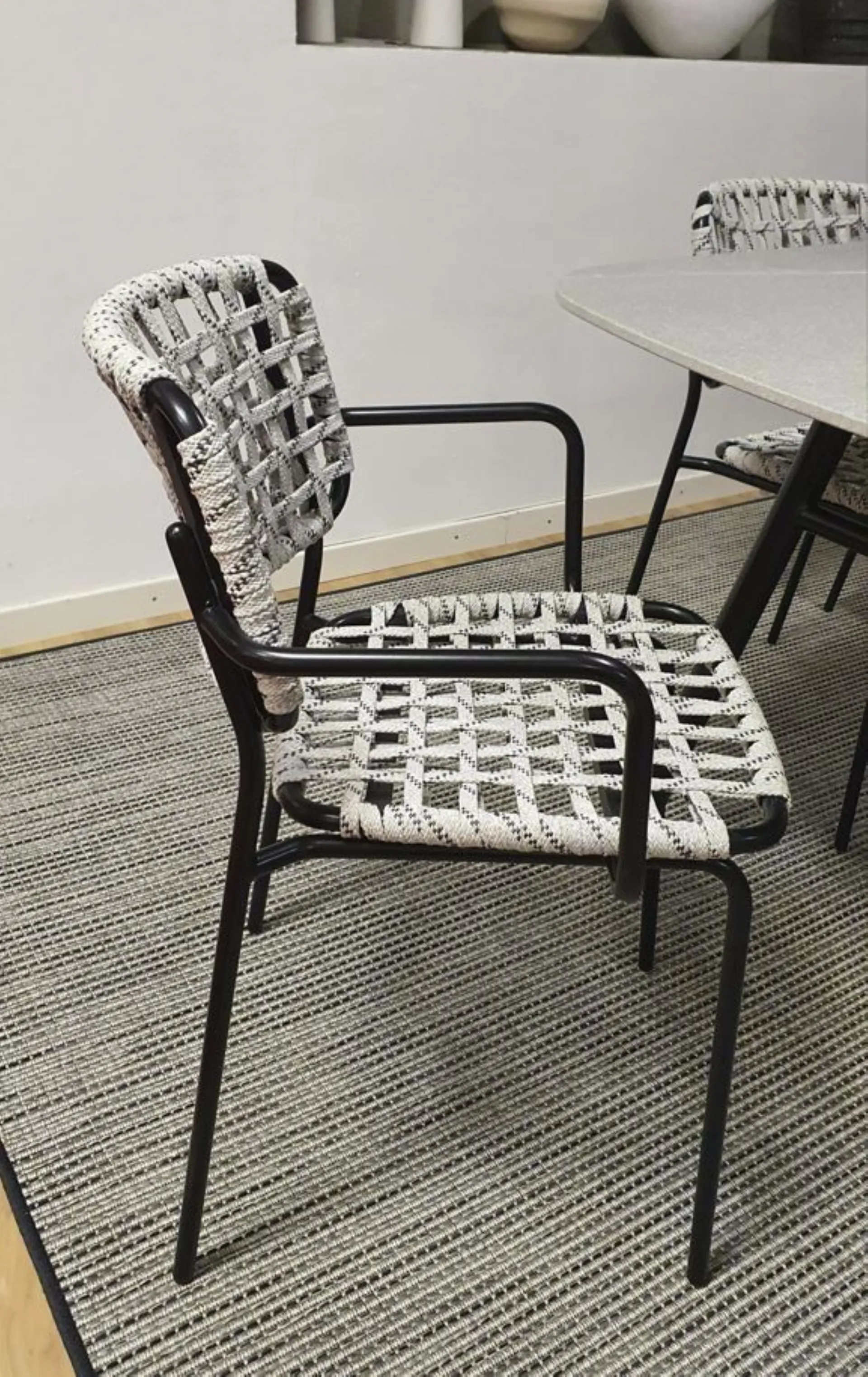 Outdoor chair with armrest mod. CB1991-E YO! Structure P15 mt. MATT BLACK Seat STA cord Tortuga SAND