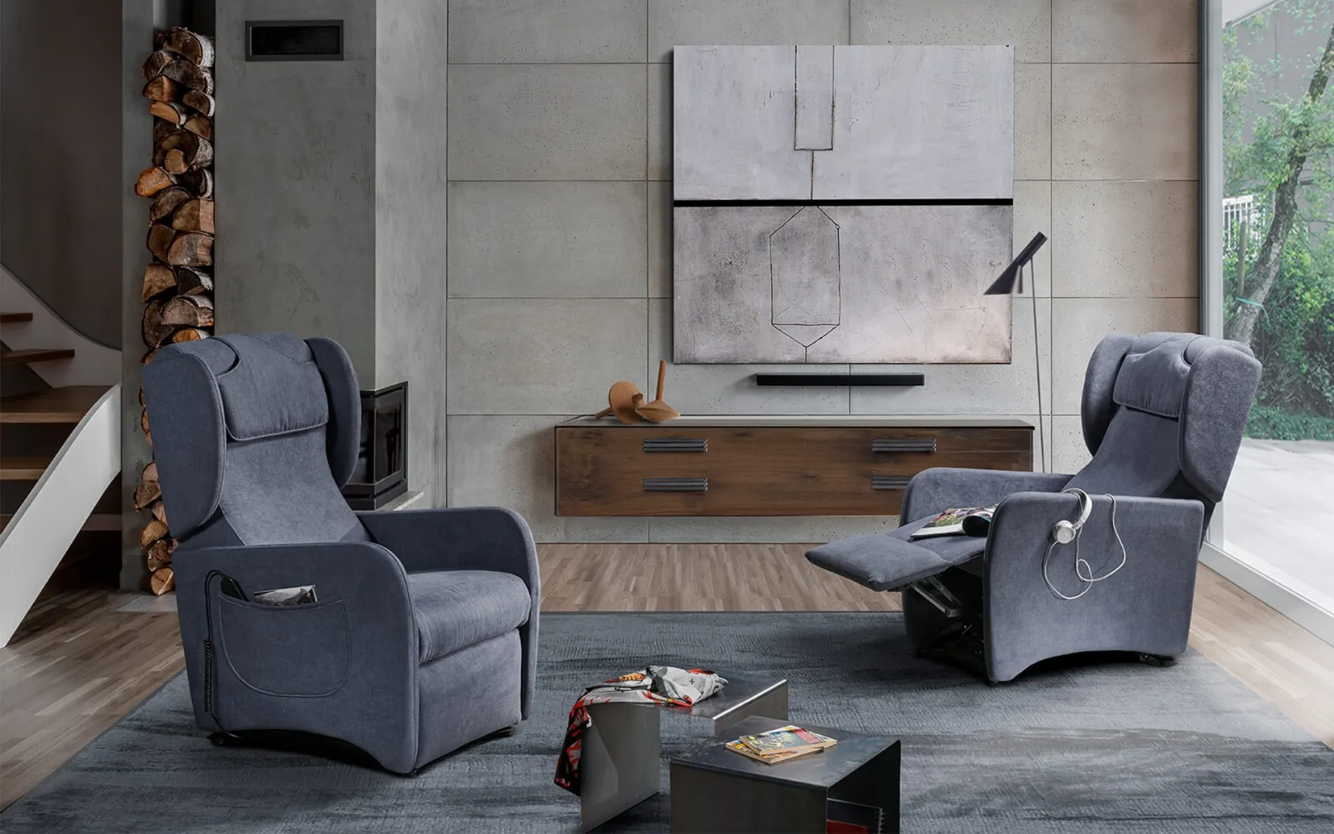 Orietta relaxation armchair in fabric: supports your movements for the highest level of comfort.